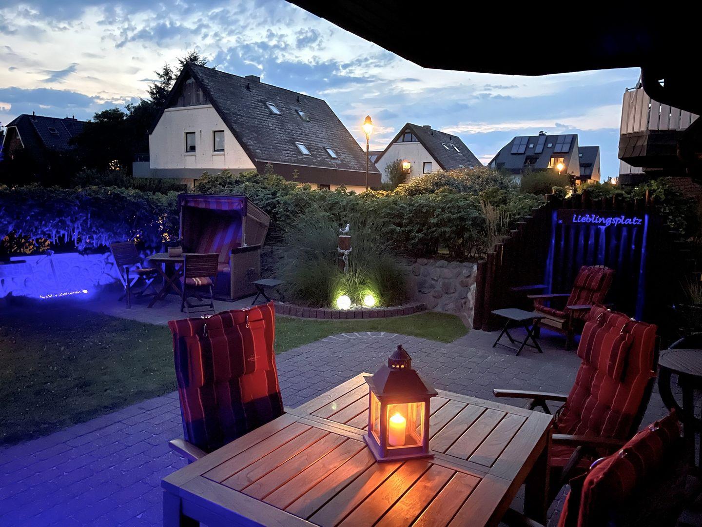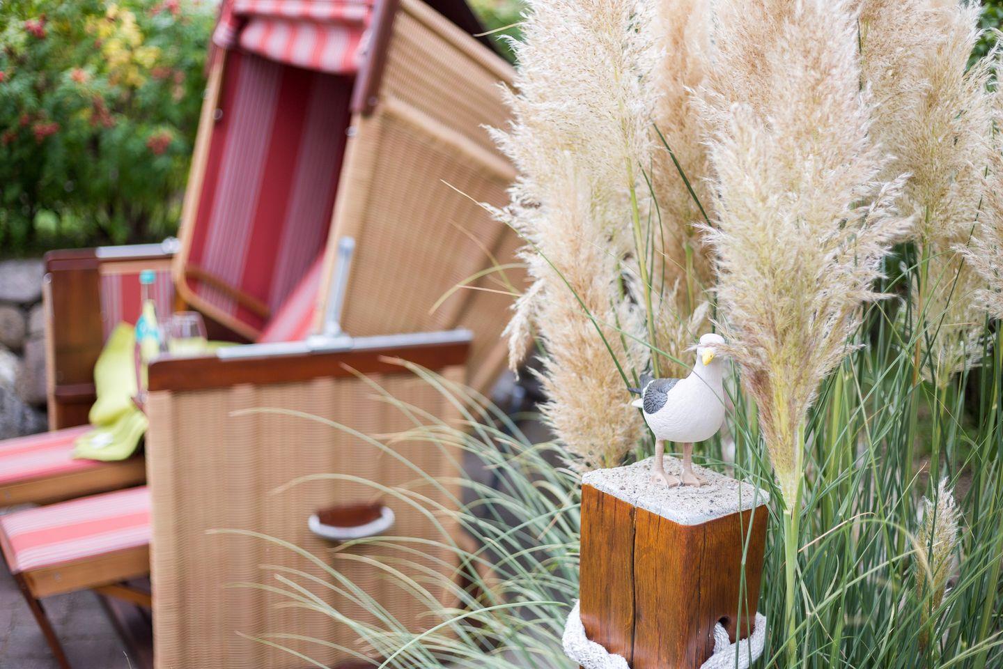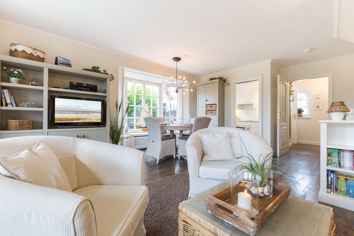 Erdgeschoss: Geschmackvoll und hochwertige möblierter Wohnraum mit Panasonic 4k Ultra HD Smart-TV (mit CI+ Modulschacht), Panasonic 4k Ultra HD Blu-Ray Player, Auna Internet Radiosystem mit CD Player, Bluetooth, MP3-USB Port und Spotify Connect. Luxuriöse separate Küche mit Geschirrspüler, Microwelle und Backofen. Gäste-WC. Sonnige West-Terrasse mit Teak-Gartenmöbeln und geflochtenem XL-Strandkorb in der Zeit von ca. Mai bis Oktober.