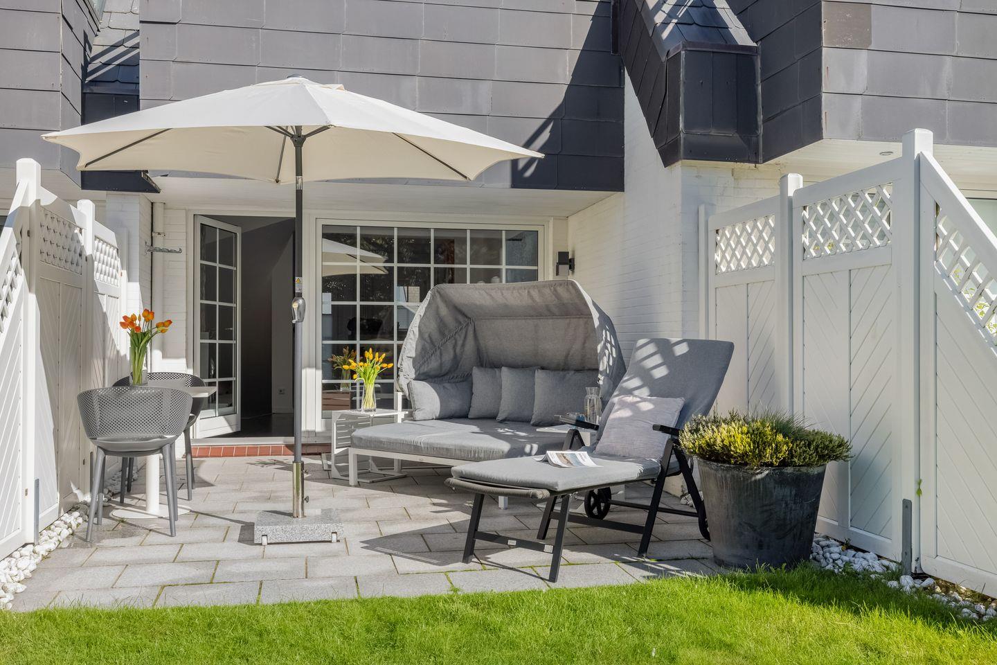 In ruhiger Lage in Wenningstedt zwischen Dorfteich und Dünen erwartet Sie dieses helle und moderne Appartement, das „Studio Veit“. Beim Betreten des Domizils erwartet Sie ein offen gestalteter Wohn- und Küchenbereich mit einer Essgelegenheit an der Bar, die die Küche vom Wohnbereich trennt. In der voll ausgestatteten Küche bleiben keine Kochwünsche offen. Vom Wohnbereich aus betreten Sie die möblierte Terrasse, auf der Sie sich im Sommer entspannen können.