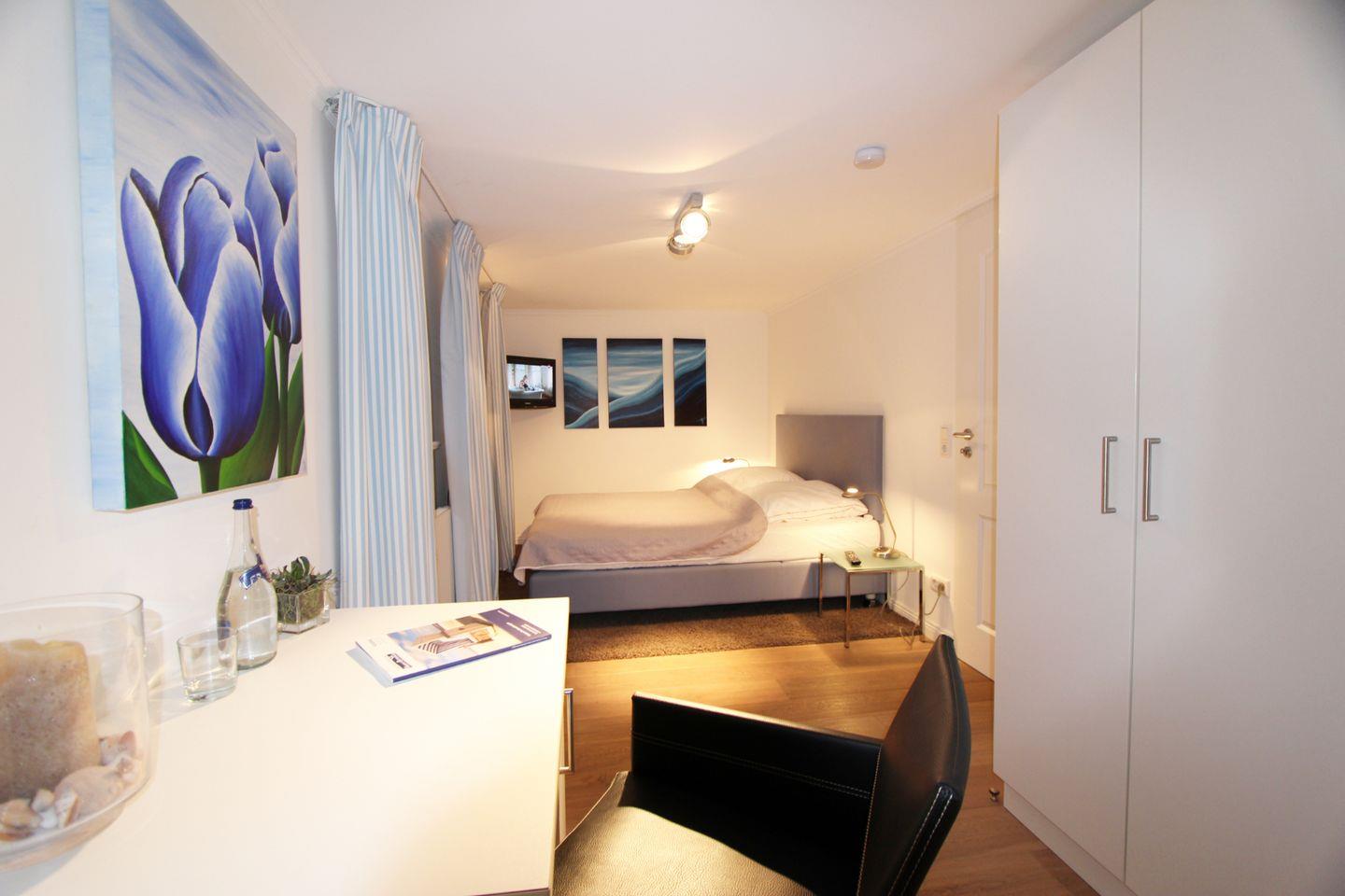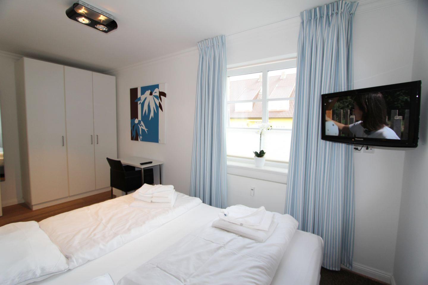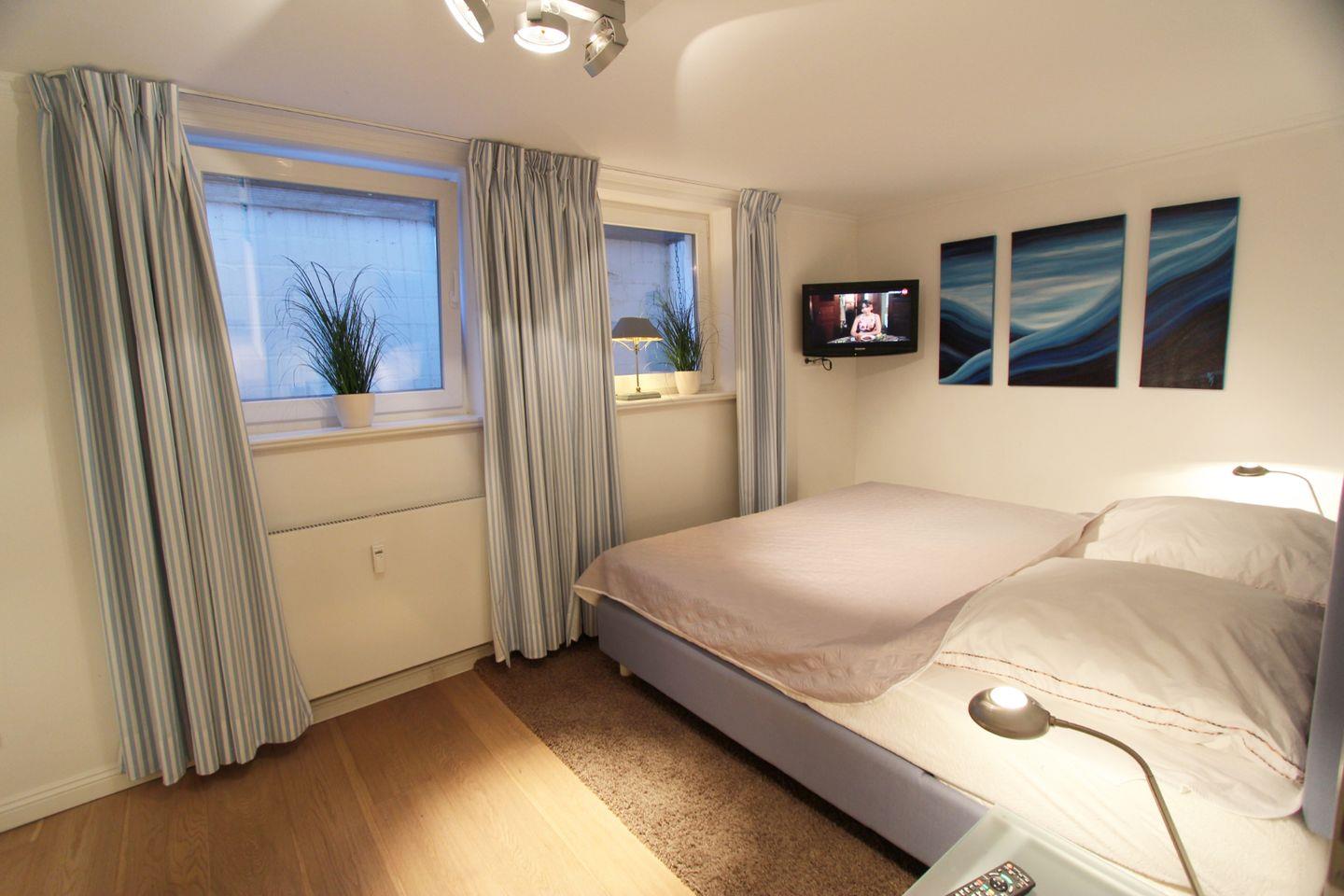 Das Hausteil verfügt über drei separate Schlafräume. Im Erdgeschoss befindet sich ein Doppelschlafzimmer mit Boxspringbett (durchgehende Matratze). Zwei weitere Doppelschlafräume mit Boxspringbetten (180 cm und 160 cm) befinden sich im Untergeschoss. Alle Schlafzimmer verfügen über ein TV-Gerät.