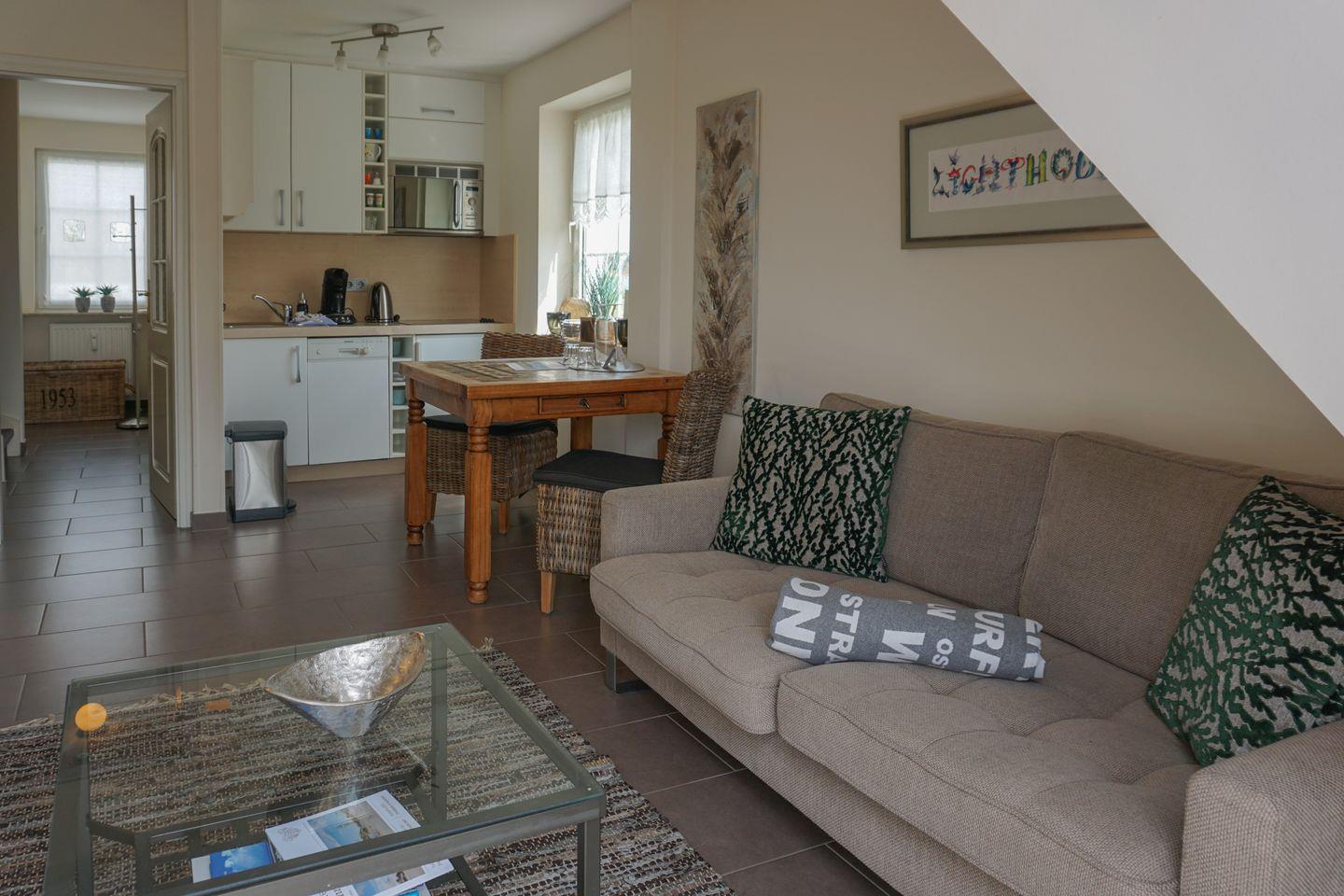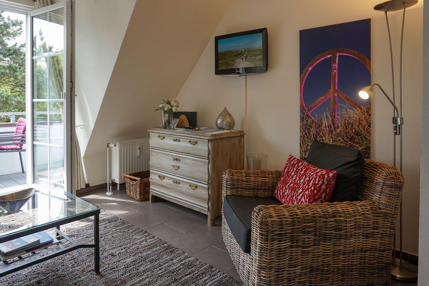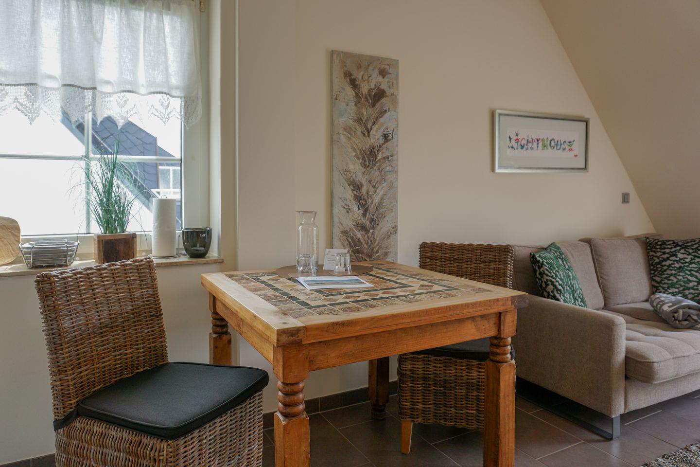In ruhiger Lage nahe des Strandes in Wenningstedt erwartet Sie dieses Appartement mit einer geschmackvollen und gemütlichen Einrichtung. Der Hauptbereich der Wohnung besteht aus einem Couchbereich, einem Esstisch für zwei Personen und einer kleinen, offenen Küche, die Ihnen alle Möglichkeiten gibt, sich im Urlaub ein leckeres Essen zuzubereiten.