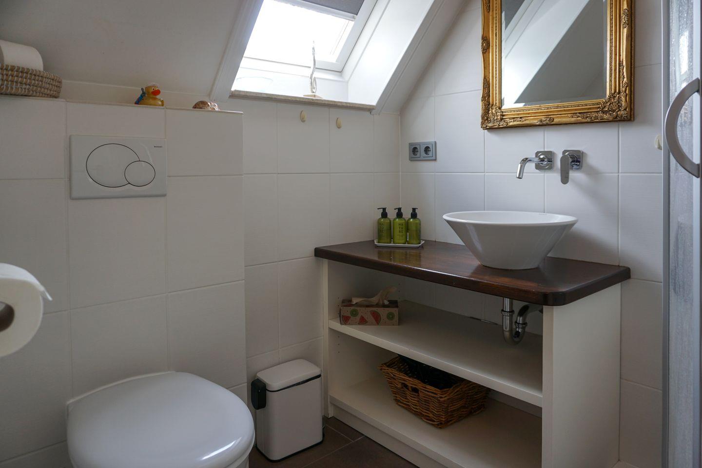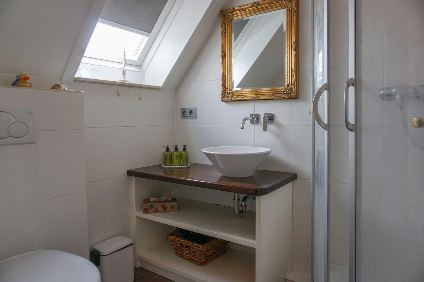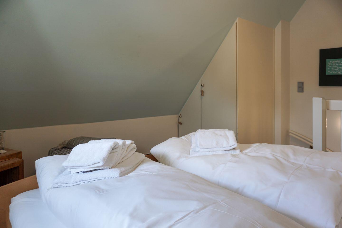 Im Obergeschoss auf gleicher Ebene finden Sie ein Tageslichtbadezimmer mit Dusche und WC. Im Dachgeschoss erwartet Sie ein weiterer Raum, der mit einem Doppelbett ausgestattet ist.
