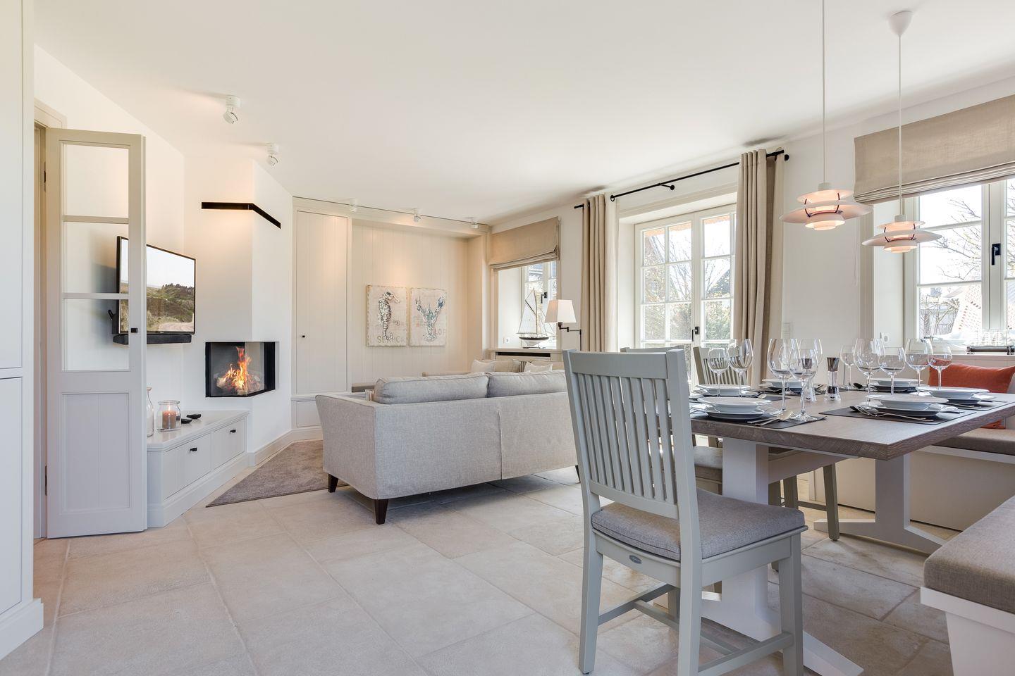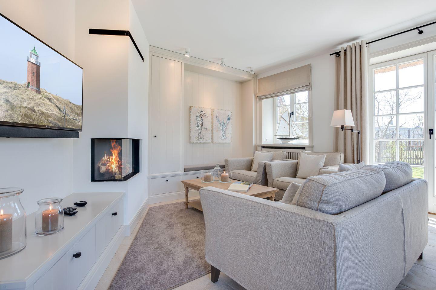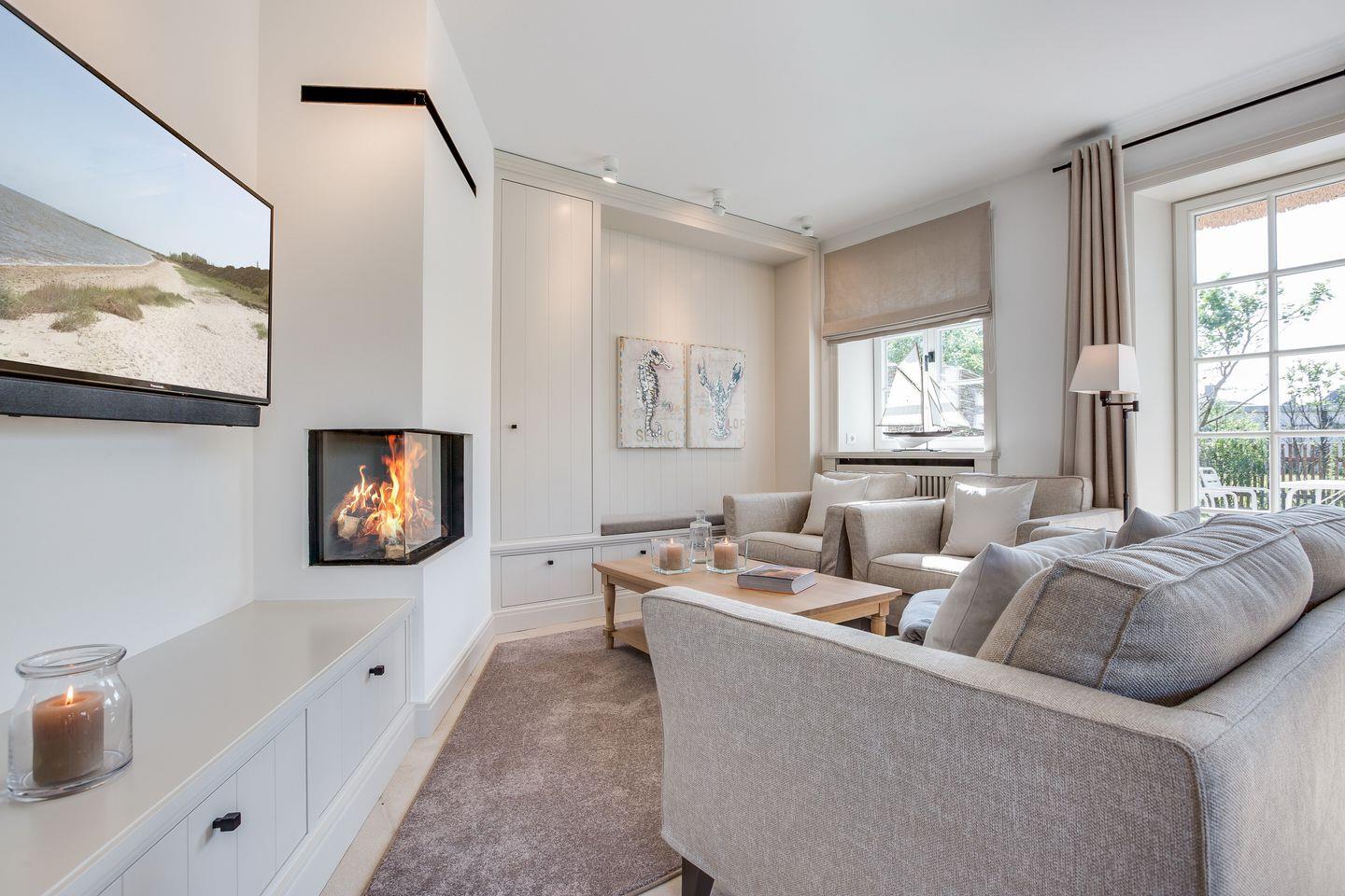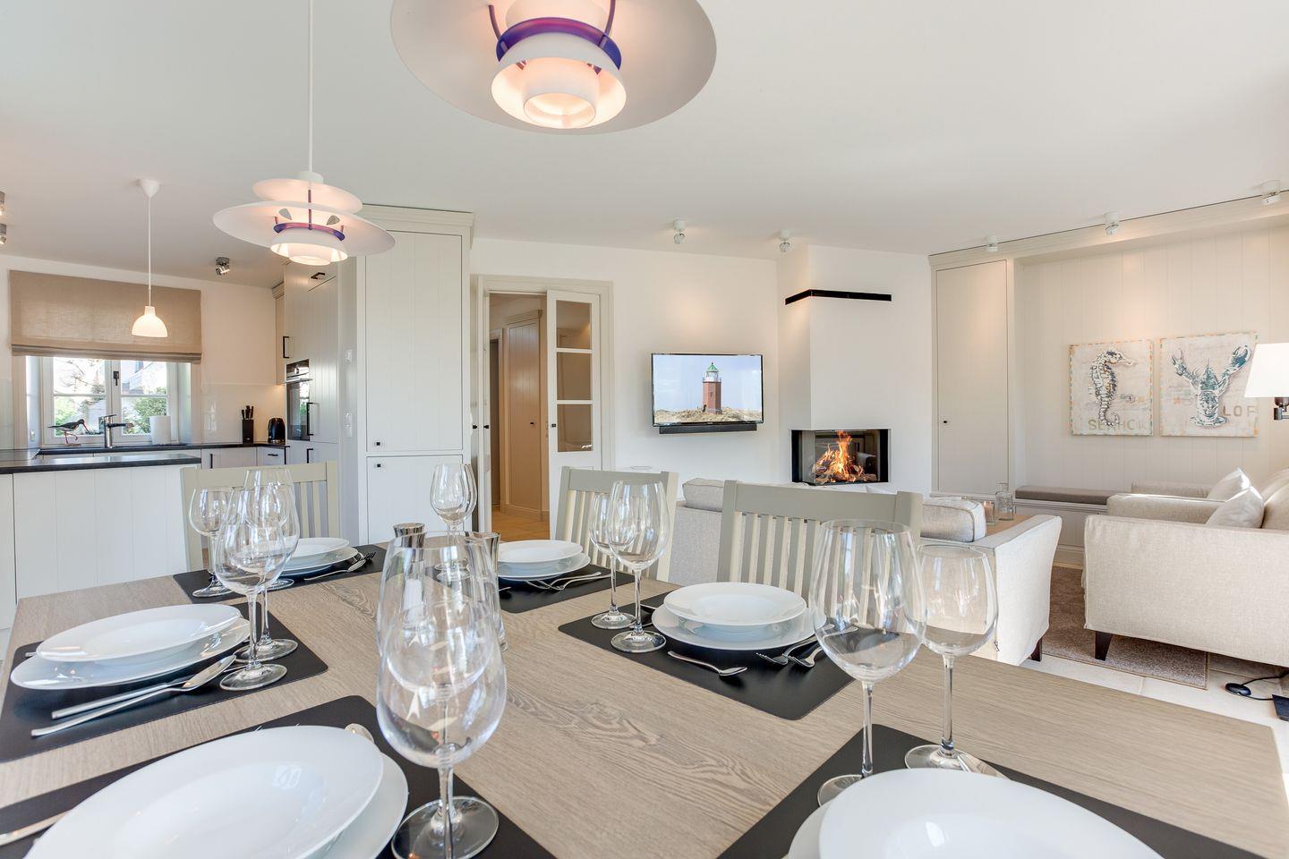 EG: Wohnbereich mit Flatscreen TV, Soundbar mit Bluetooth, Gaskamin, W-LAN, separate Küche mit Backofen, Induktionsherd, Geschirrspülmaschine, Nespresso Maschine, Gäste-WC, große Terrassen mit Strandkorb