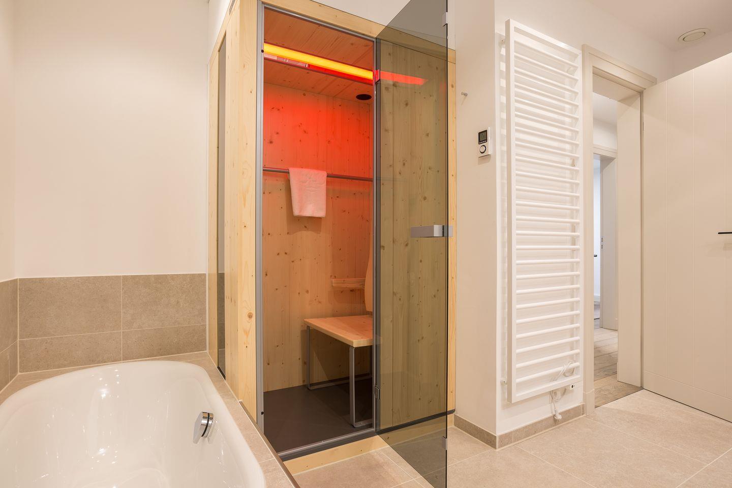 Das Untergeschoss des Hauses verfügt über einen Schlafraum mit Doppelbett und ein großzügiges Tageslichtbad mit Dusche, Badewanne und WC. Außerdem finden Sie hier eine Infrarotkabine „Physiotherm“ und einen Raum mit Waschmaschine und Trockner. Für Familien bietet dieses Haus ein ganz besonderes Highlight: Spielen Sie gemeinsam mit Ihren Kindern am hauseigenen Fußball-Kicker oder werfen Sie ein paar Pfeile auf die Dartscheibe, die sich im selben Raum befindet.