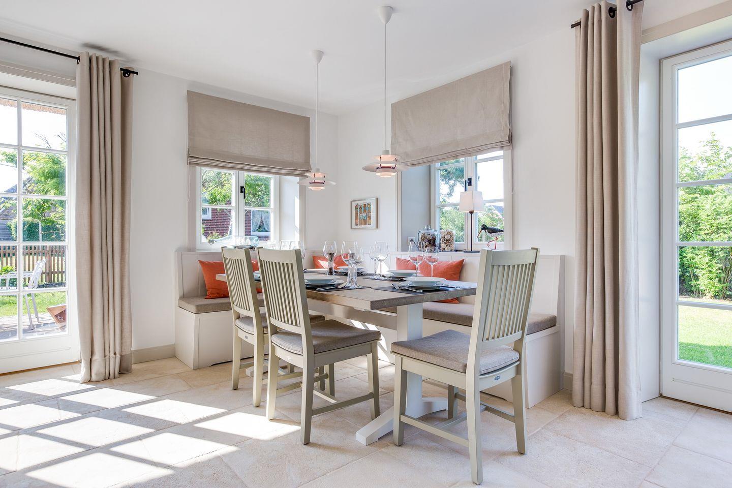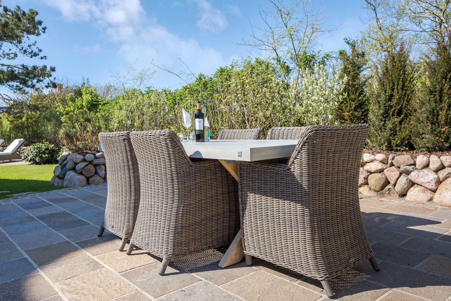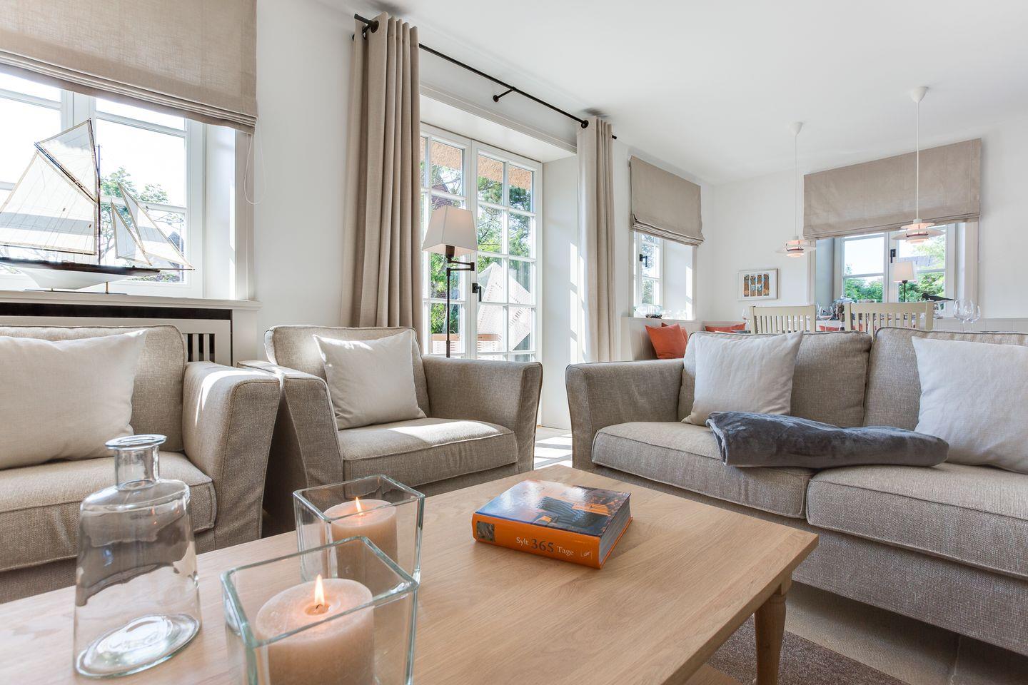Erleben Sie Ihren Urlaub in einem neu erbauten Ferienhaus im typischen Sylt-Stil unter Reet. Das Haus bietet Ihnen auf 123 m² Nutzfläche alles was das Urlaubsherz begehrt. Im Erdgeschoss erwartet Sie ein großzügig gestalteter Wohn- und Essbereich, der stilvoll mit nordischen Accessoires eingerichtet ist. In der separaten Küche können Sie sich dank der tollen Ausstattung ein wunderbares Urlaubs-Dinner kochen und dieses auf einer der großzügigen Terrassen genießen. Diese ist von April bis Oktober mit einem Strandkorb und mehreren Sitz- und Liegemöglichkeiten ausgestattet. Im Erdgeschoss befindet sich außerdem ein Gäste-WC.