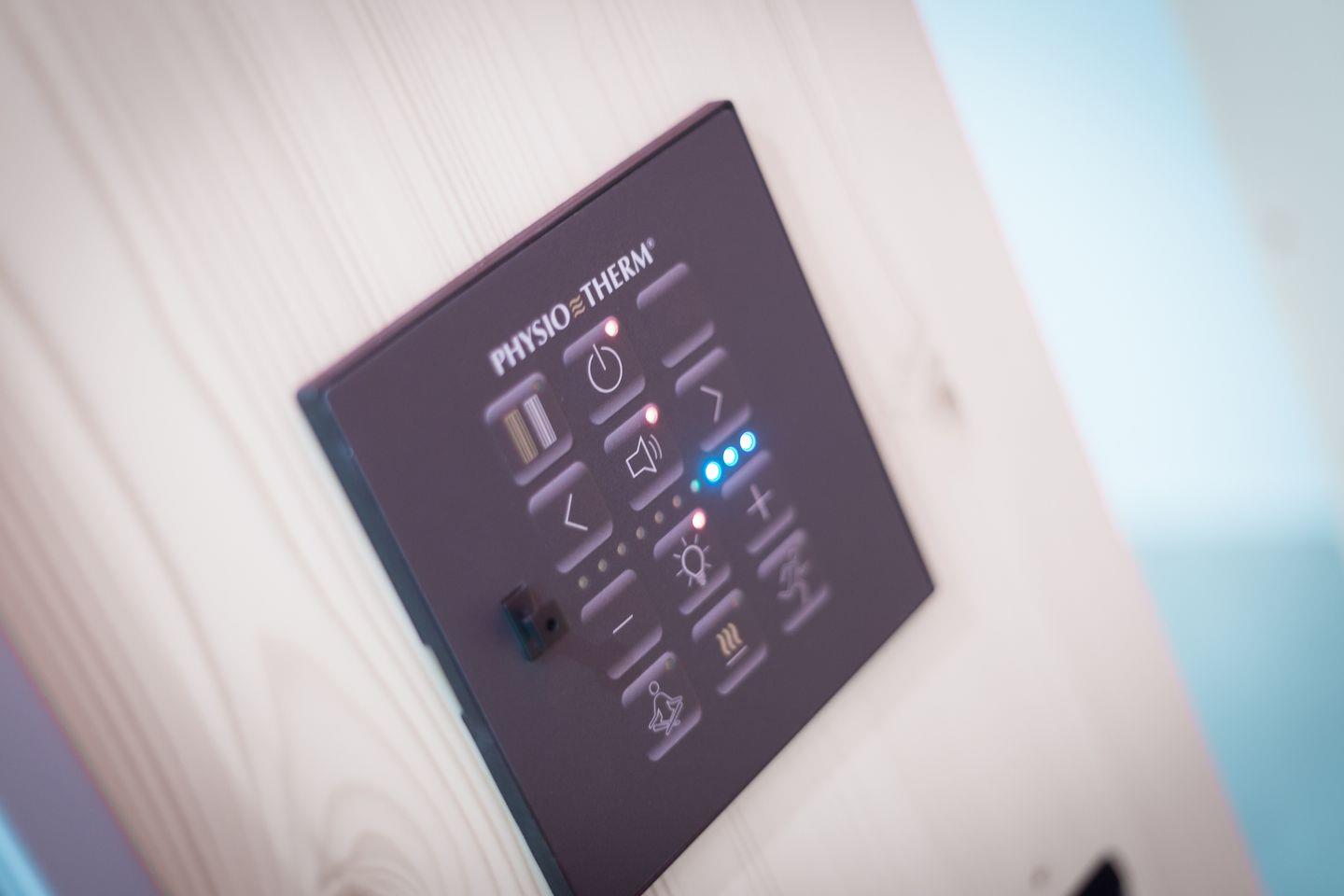 UG: Raum mit Doppelbett (180x200cm), Bad mit Dusche, Badewanne und WC, Infrarotkabine „Physiotherm“, Waschmaschine und Trockner