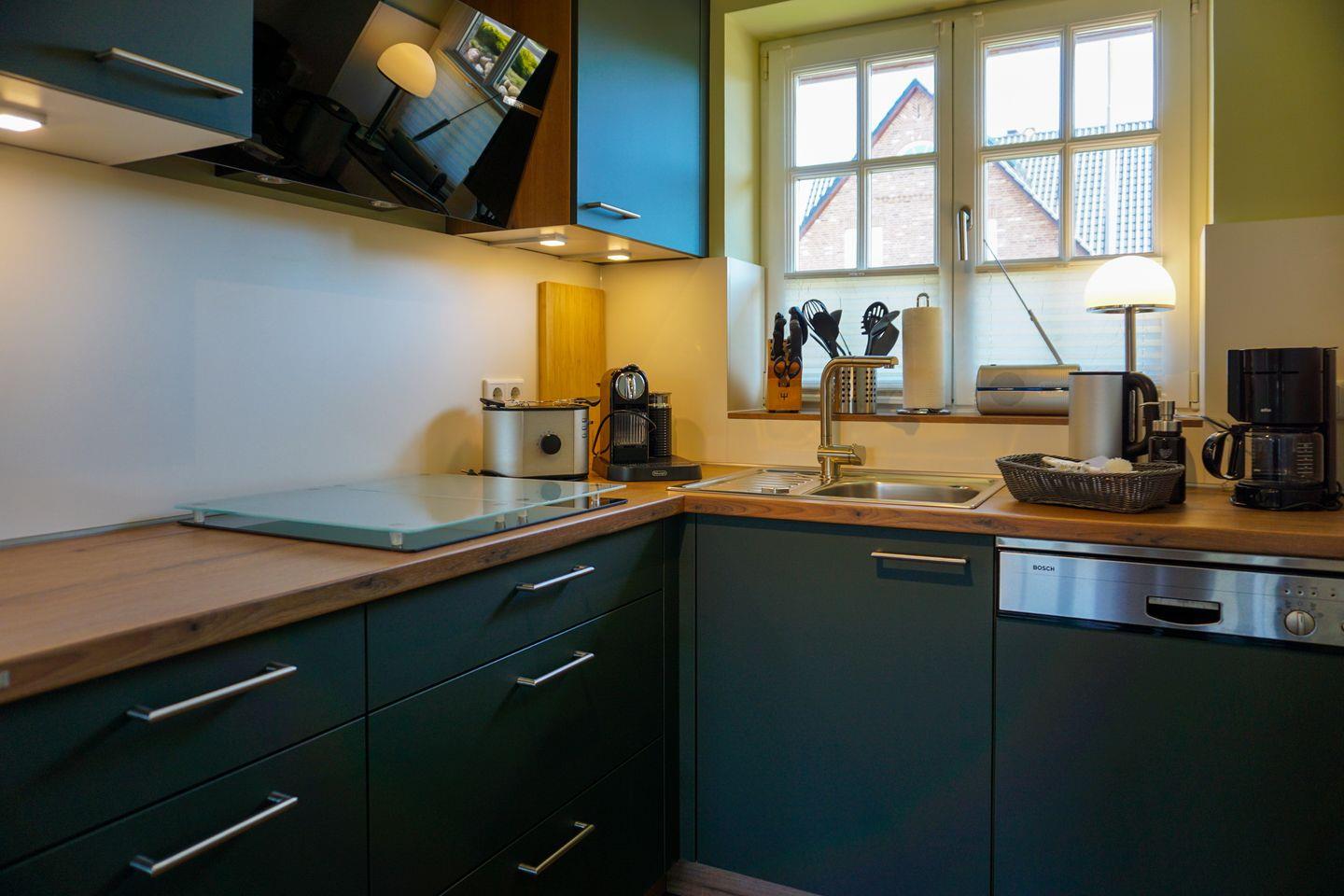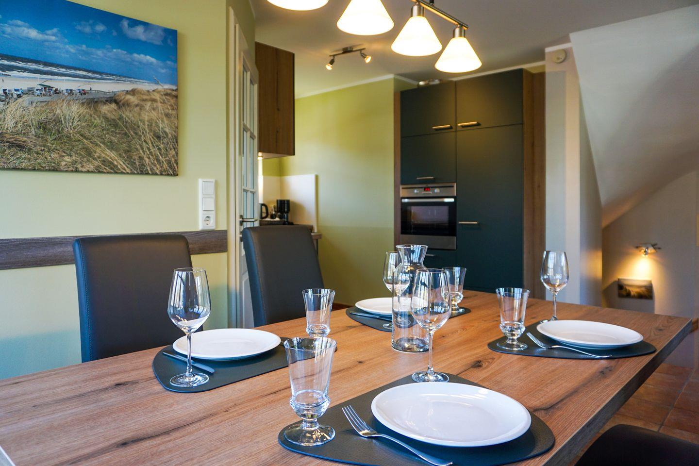 Erdgeschoss: Sehr großzügiger Wohnraum, der durch seine Helligkeit und liebevolle Möblierung besticht. Ein Kaminofen zaubert nicht nur zur kälteren Jahreszeit kuschelige Stunden und Behaglichkeit. Schöne Sitzecke mit L-Lounge Sofa im Erker. 46'' Samsung 3D-SMART TV mit 3D Brillen, eine Bose Soundtouch Musikanlage, sowie eine Bose Soundbar. Integrierte Küche mit Ceranherd, Backofen, Geschirrspüler, Mikrowelle und Nespressomaschine mit Milchaufschäumer. Design-Gäste-WC. Schöne West-Terrasse mit Gartenmöbeln und Strandkorb (ca. von April - Oktober). Geschützter Parkplatz.