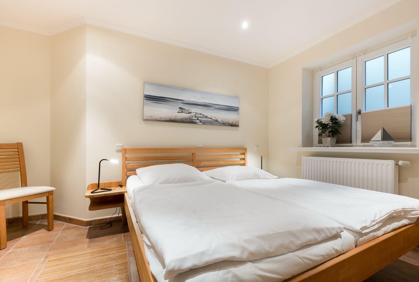 Souterrain: Zwei großzügige und schöne gestaltete Räume mit Doppelbett (1,8x2m) und jeweils einem 40 Zoll Flat-TV. Ein großes Wohlfühlbad mit Wanne, Dusche und WC.