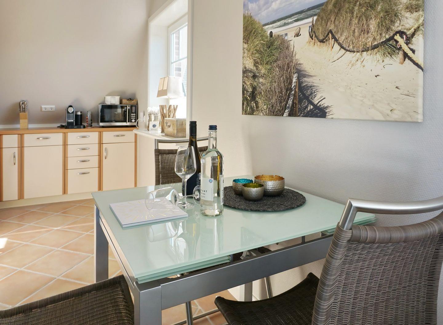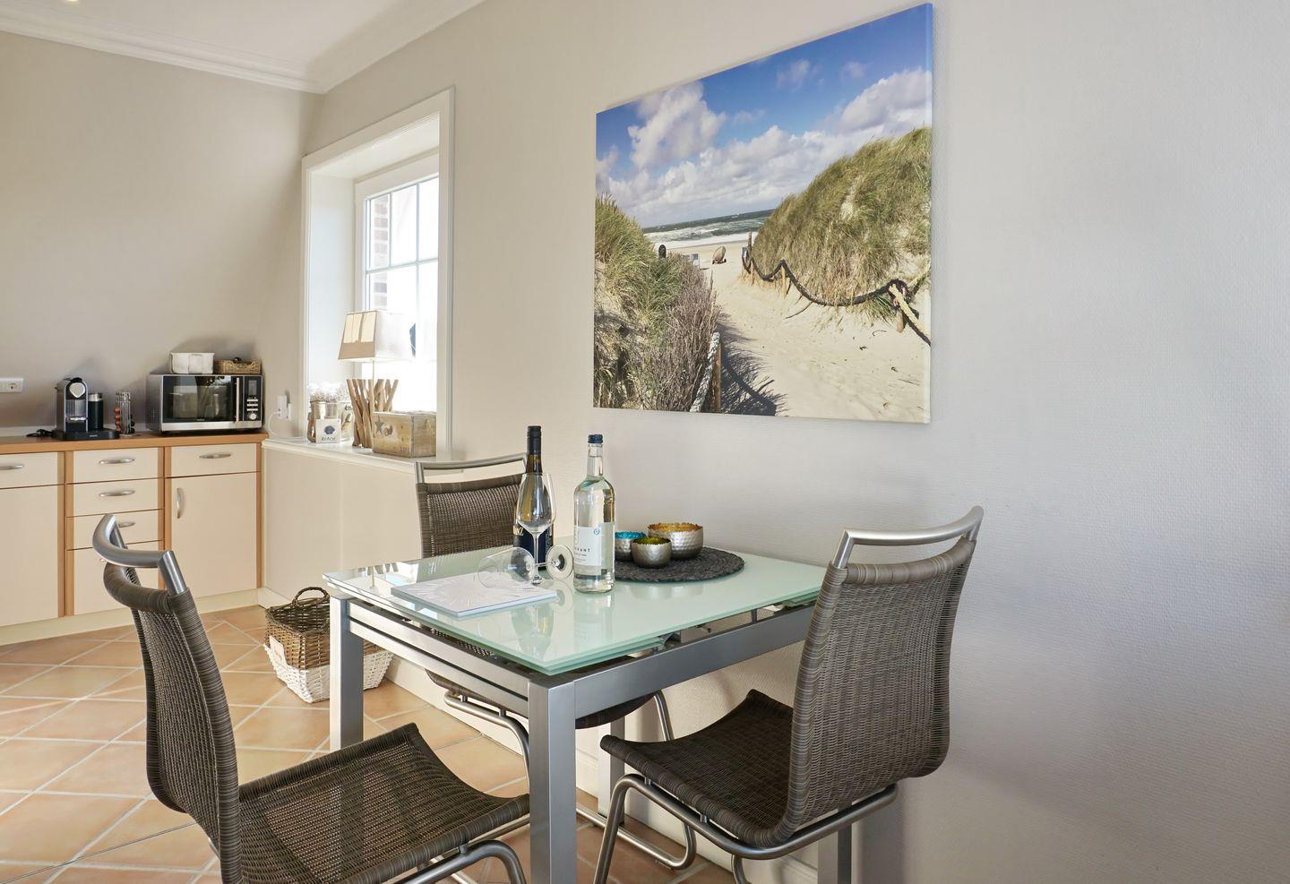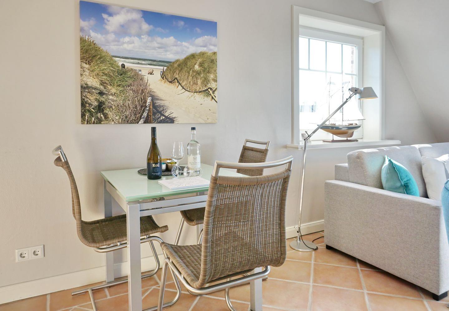 Mit dem Haus Zita empfängt Sie im Wenningstedter Süden ein sehr schönes Domizil, das nicht nur durch seine zahlreichen, liebevollen Details besticht. Angefangen mit Ihrem eigenen separaten Eingang, besticht das in Grautönen gestaltete Ambiente durch eine stilsichere Einrichtung. Auch die Helligkeit des Domizils ist eindrucksvoll: durch die Süd-Ost-Ausrichtung erstrahlt Ihr Domizil bereits morgens hell und freundlich. Auf Ihrem Ihrem Südbalkon können Sie den maximalen Sylter Sonnengenuss erleben. Sofern Sie dennoch mal ein wenig Schatten benötigen, ermöglicht Ihnen Ihre Markise auf dem Balkon die willkommene Abwechslung.