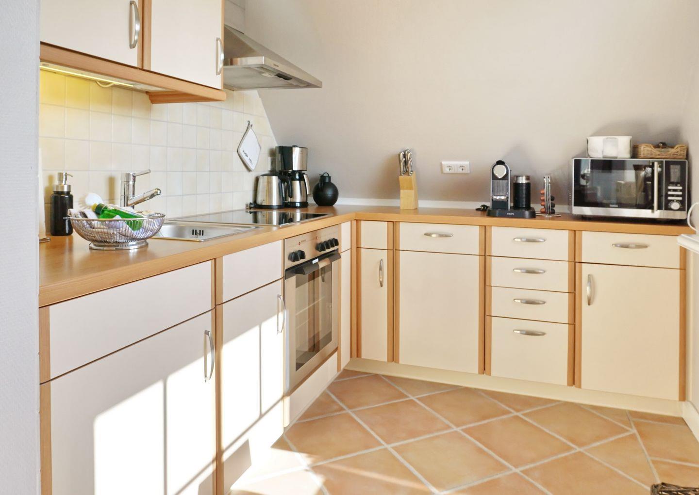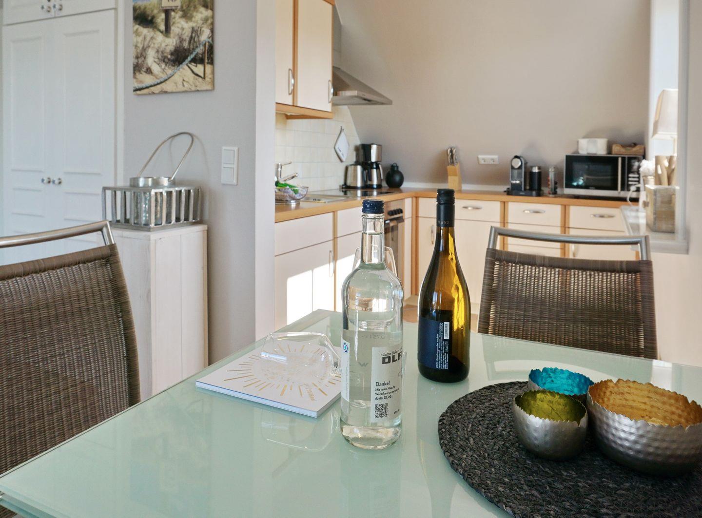 OG: Großzügiger, heller Wohnraum mit FullHD-TV, DVD-Player und Mini-Hifi-Anlage. Integrierte schöne Einbauküche mit Microwelle, Nespresso-Maschine und Geschirrspüler. Wohlfühlbad mit Dusche und WC, sowie Fußbodenheizung und beheiztem Handtuchtrockner. Sonniger Südbalkon.