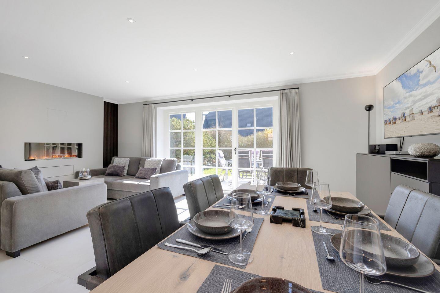 Domizilaufteilung: In bester, dorfteichnaher Lage gelegenes, luxuriöses Mittelhausteil im Erd-, Unter- und Obergeschoss. Ca. 143 qm Nutzfläche für bis zu 6 Personen.