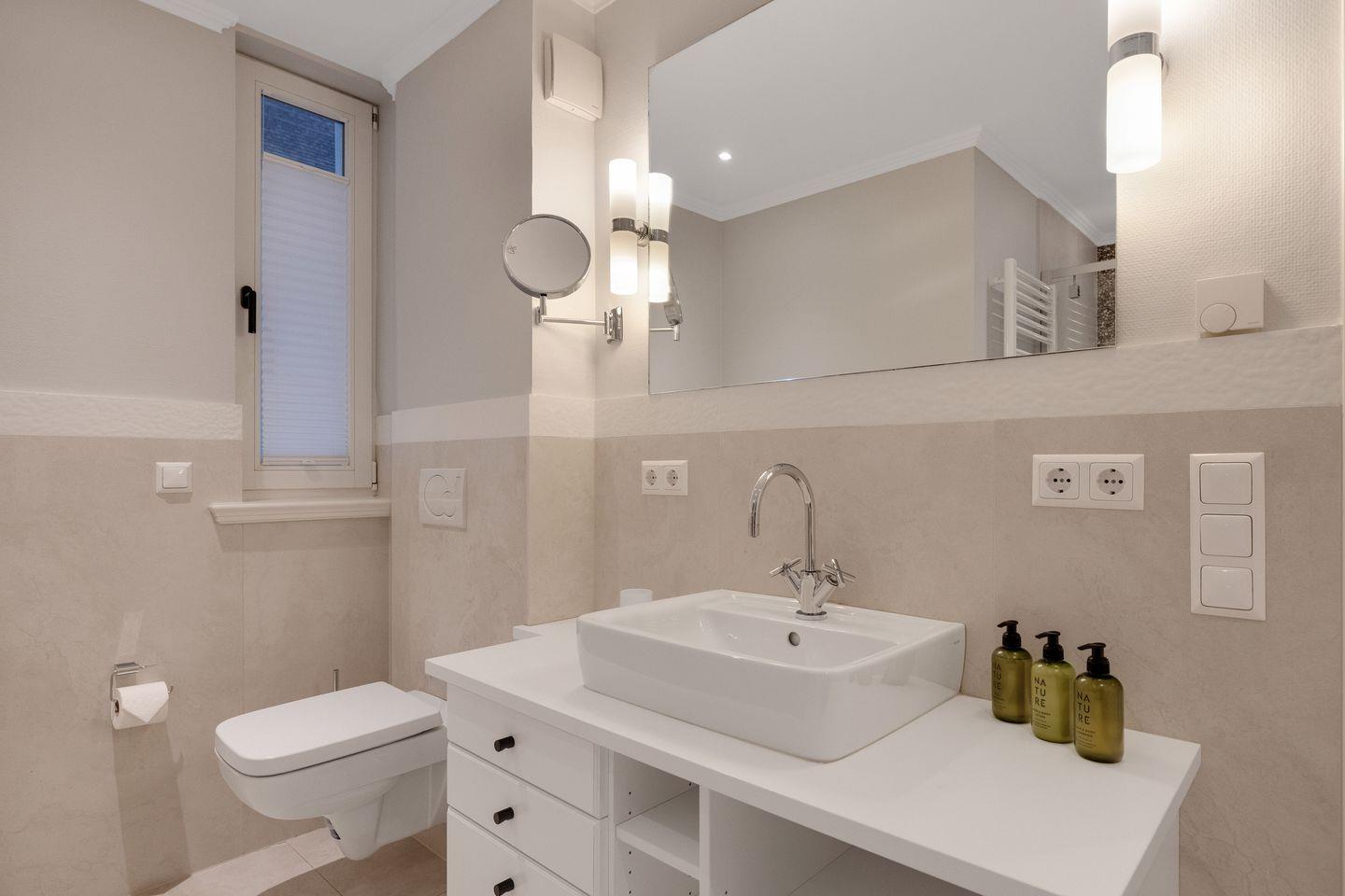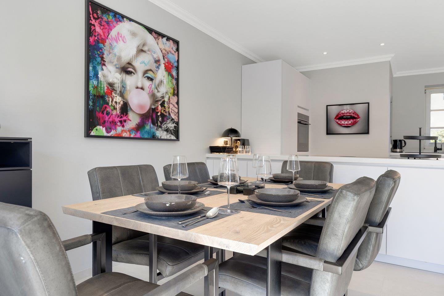 Freuen Sie sich auf wunderschöne Farben und sehr wertige, geschmackvolle Dekorationen. In Ihrem luxuriösen Wohnbereich wurde sogar ein eindrucksvoller Erdgaskamin hinter einer stylishen Glasfront prominent im Raume integriert. Dieser lässt sich ganz bequem per Fernbedienung an und ausschalten. Ihre Bäder sind übrigens kleine Wellnesswelten. Eine Sauna darf auch nicht fehlen. Und das alles in bester, zurückgezogener Lage am Dorfteich, mit eigenem, sonnigem Süd-Gärtchen und XXL-Terrasse. Welcome !