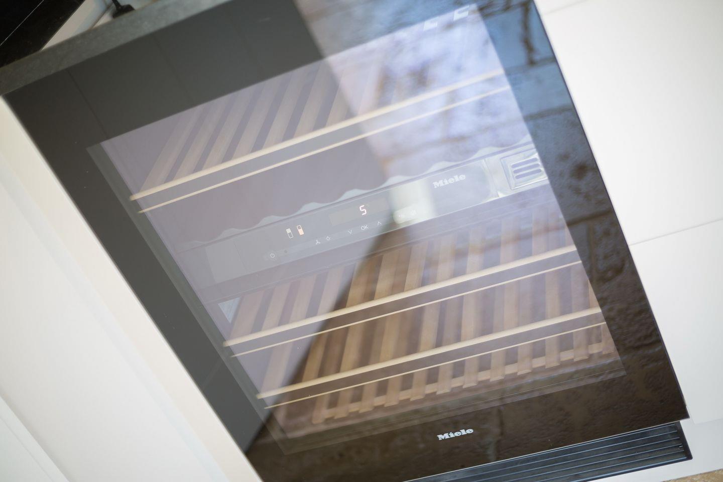 Die Zimmertüren sind selbstverständlich tischlergefertigt und durch wunderschöne belgische Türdrücker in schwarzem Metall veredelt (für alle Markenfreaks: hier zeichnet die Firma Dauby aus Belgien verantwortlich, "der Porsche unter den Türbeschlägen", so to say). Ihre ebenfalls von Tischlerhand gefertigte Luxusküche ist schlichtweg ein Traum, auch hier werden Technik- und Qualitätsverliebte bei den Begriffen "BORA Induktionsherd" oder einem beeindruckendem Siemens XXL-Kühlschrank mit Frische-Auszugtüren und Eismaschine hellhörig - ein Weinklimaschrank darf hier auch nicht fehlen.