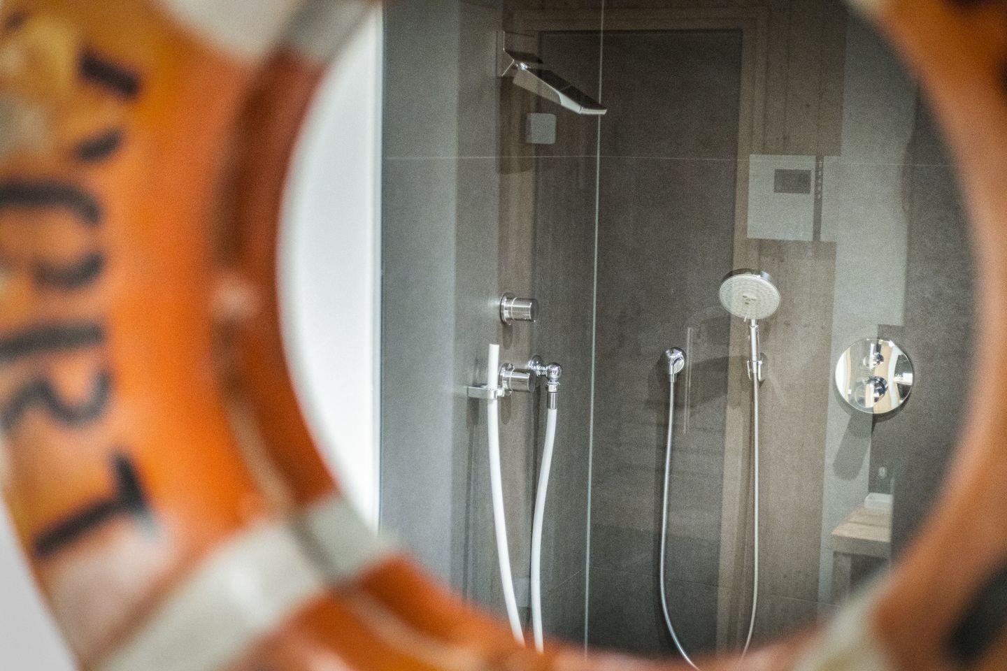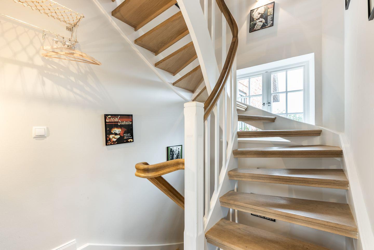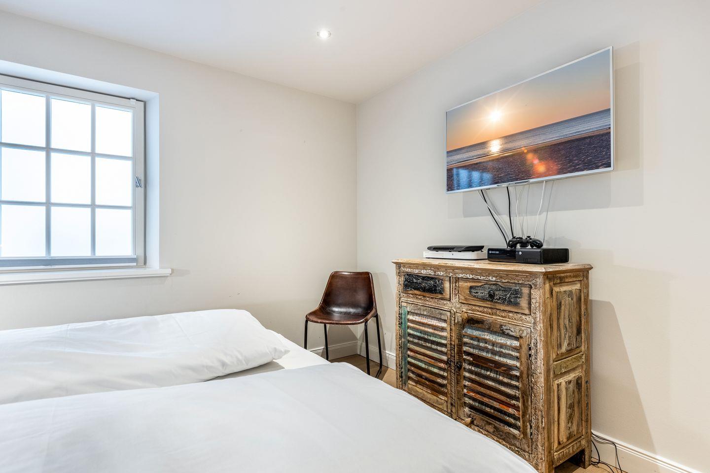 Im Obergeschoss des Hauses erwartet Sie ein großes Schlafzimmer mit viel Schrankplatz und Flatscreen-TV. Das Tageslichtbadezimmer mit XXL-Dusche und WC befindet sich direkt nebenan. Dieses besticht durch ein ganz besonderes Design mit ausgefallenen Möbeln und einzigartigen Fliesen.
