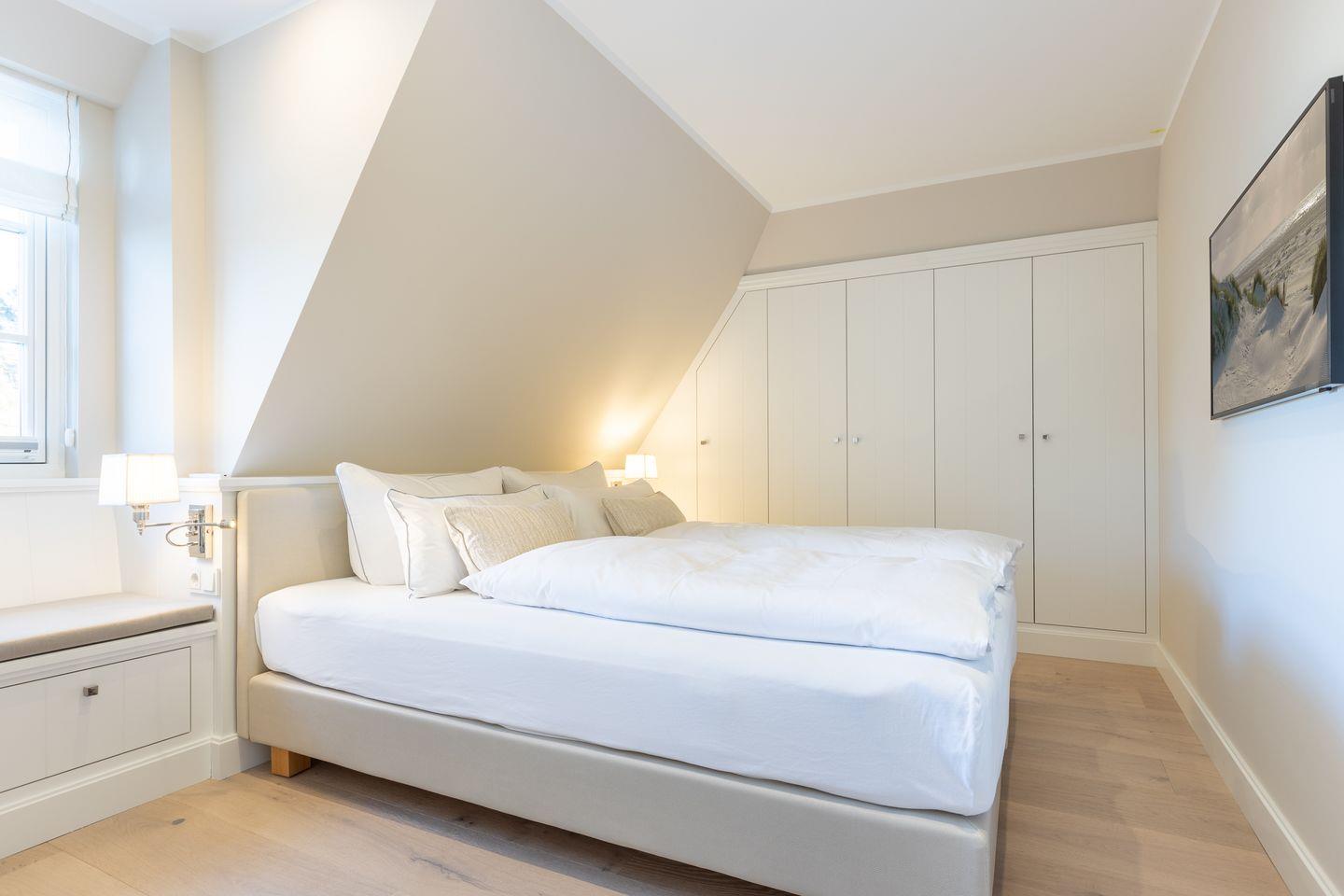 Im Obergeschoß befinden sich zwei weitere Schlafzimmer mit jeweils einem Doppelbett (180x200cm), TV und zwei Duschbädern. Im Masterschlafzimmer liegt das Bad ensuite.