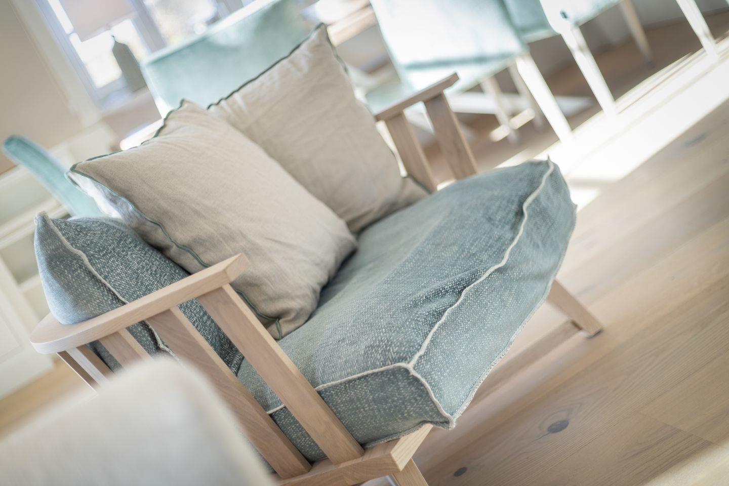 Im Erdgeschoß befindet sich die offenen Küche (Induktionskochfeld, Backofen, Mikrowelle, Geschirrspüler, Jura Kaffeevollautomat und Kaffeefiltermaschine), der Ess- und Wohnbereich (mit Gaskamin und TV) schließt übergangslos an. Die Terrasse in Südlage (Möblierung von April - Oktober) lädt im Sommer zum Verweilen ein, der Strandkorb (April - Oktober) bietet auch bei leicht windigem Wetter genügend Schutz. Im Erdgeschoss ist ein Gäste-WC.
