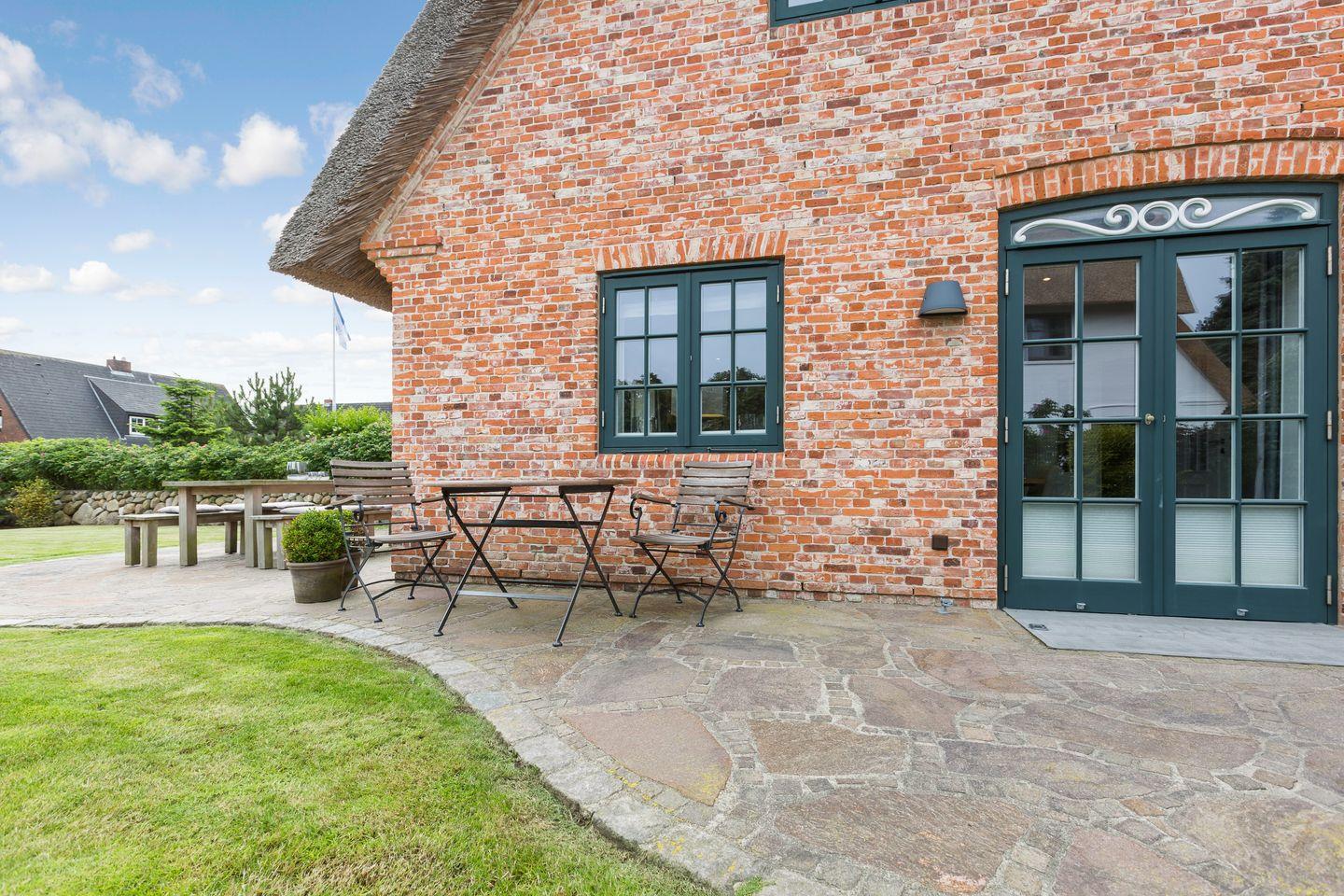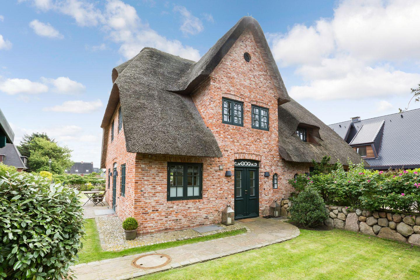 In versteckter Lage Wenningstedts gelegenes Luxushausteil unter Reet. Ca. 163 qm Nutzfläche im Erd-, Ober-, Dach- und Untergeschoss für bis zu 8 Personen.