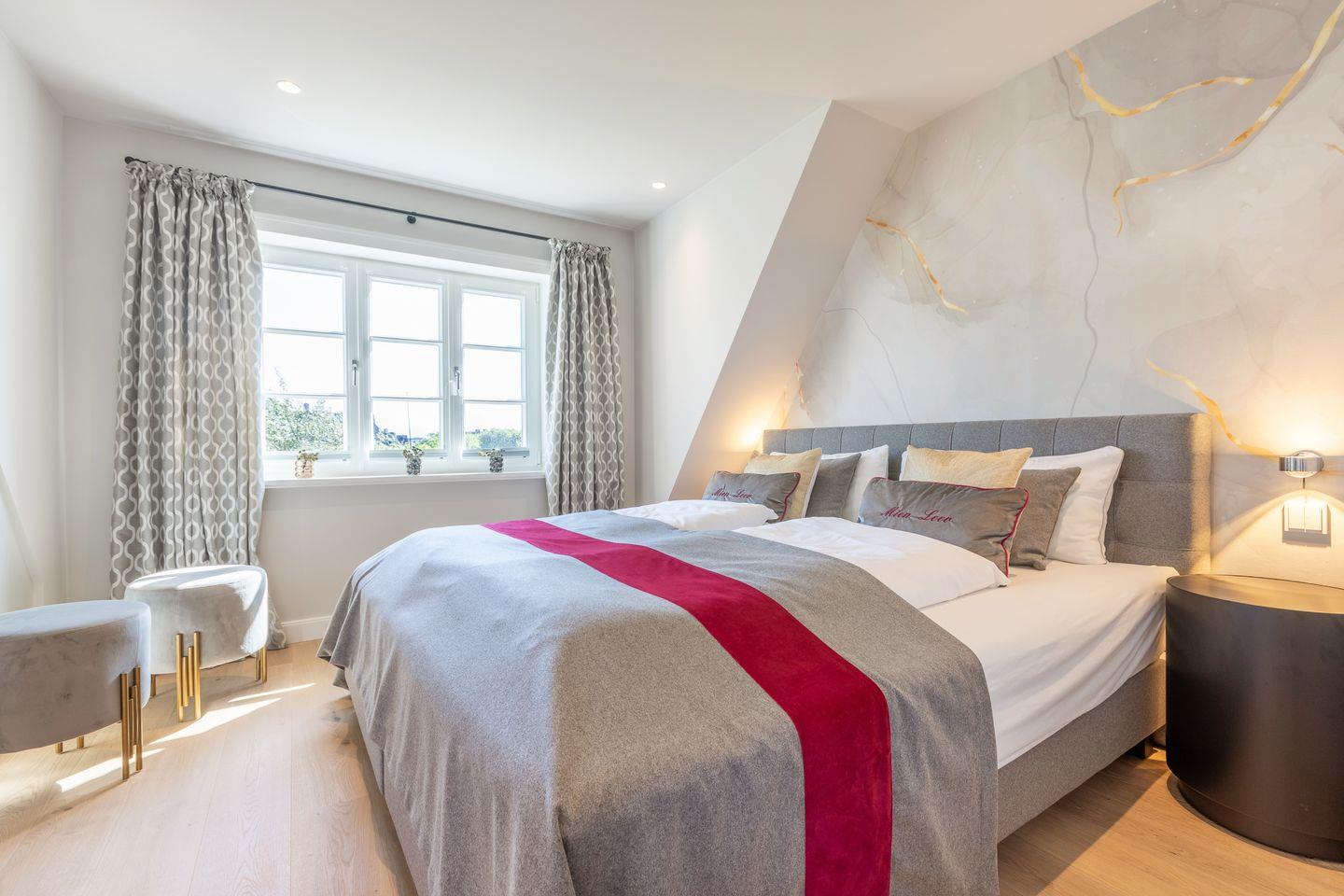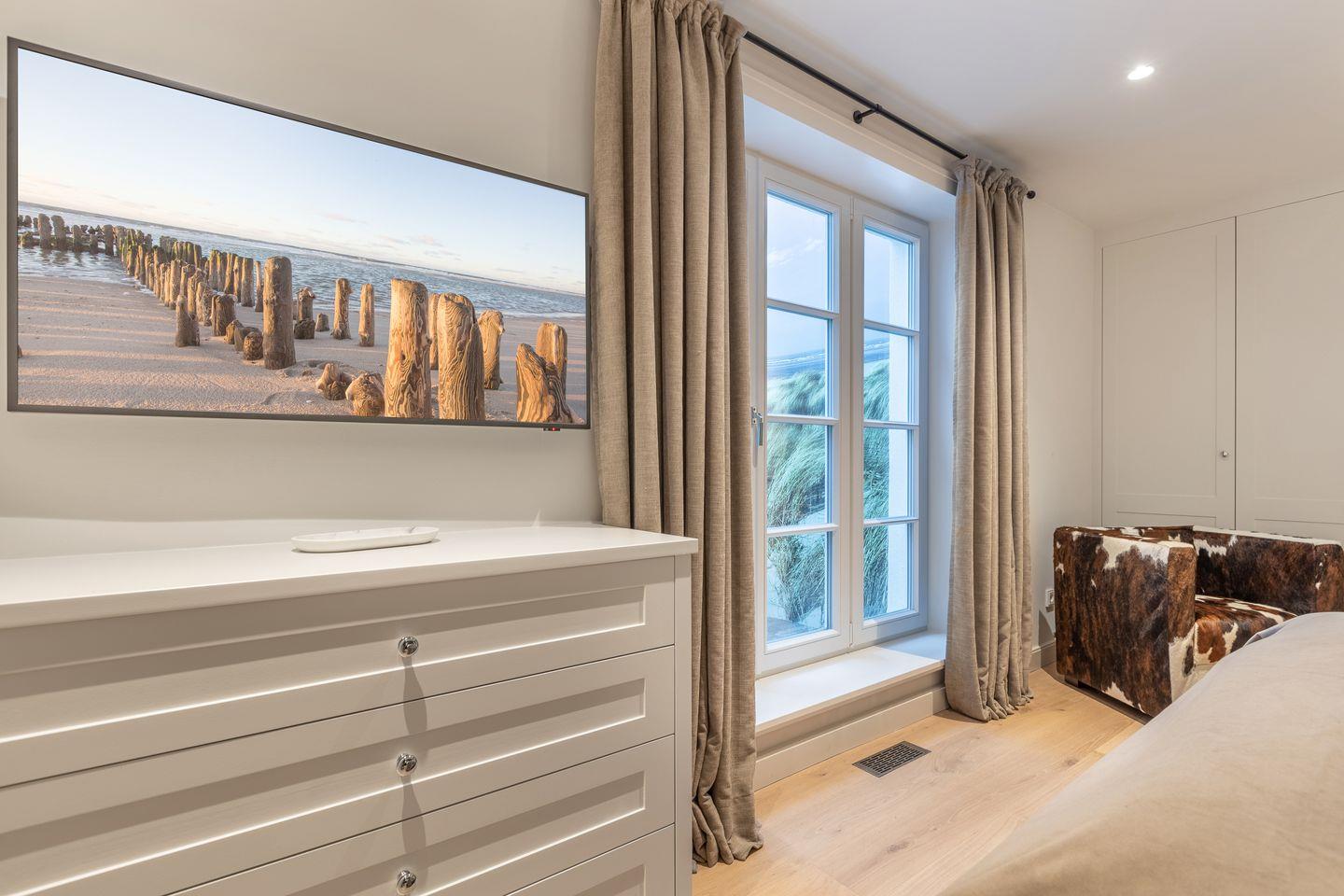 Dieses neu gebaute Hausteil mit 140qm in unmittelbarer Nähe des Dorfteiches in Wenningstedt bietet bis zu 6 Personen ausreichend Platz. Von hier aus kann man bequem mit dem Fahrrad durch die Wiesen in Richtung Kampen fahren. Es liegt in einer privaten und ruhigen Lage direkt am Naturschutzgebiet mit einem Blick auf Heide und Düne. Diverse Einkaufsmöglichkeiten und Restaurants befinden sich in der Nähe. "Mien Leev" - Meine Liebe, ist hier wörtlich zu nehmen, die "Liebe" findet sich im kleinsten Detail wieder.