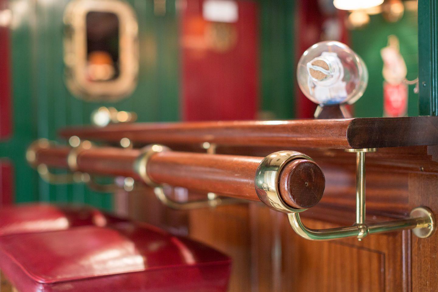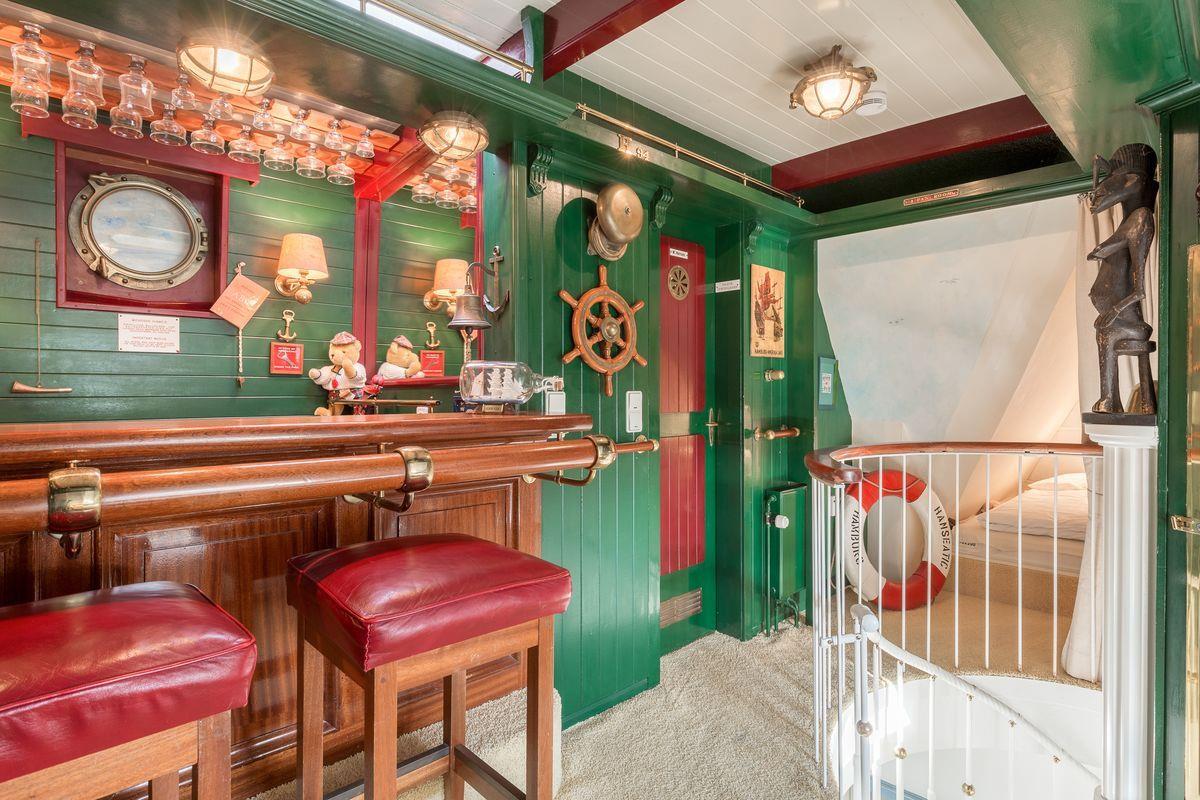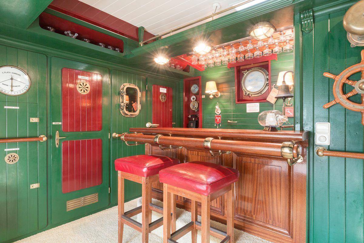 DG: Hier erwartet Sie Ihre eigene Bar, kunstvoll im Stile einer Schiffsbar von kundiger Tischlerhand gestaltet. Entdecken Sie zahlreich originale Accessoires ehemaliger Kreuzfahrtschiffe - Atmosphäre pur ! WC.