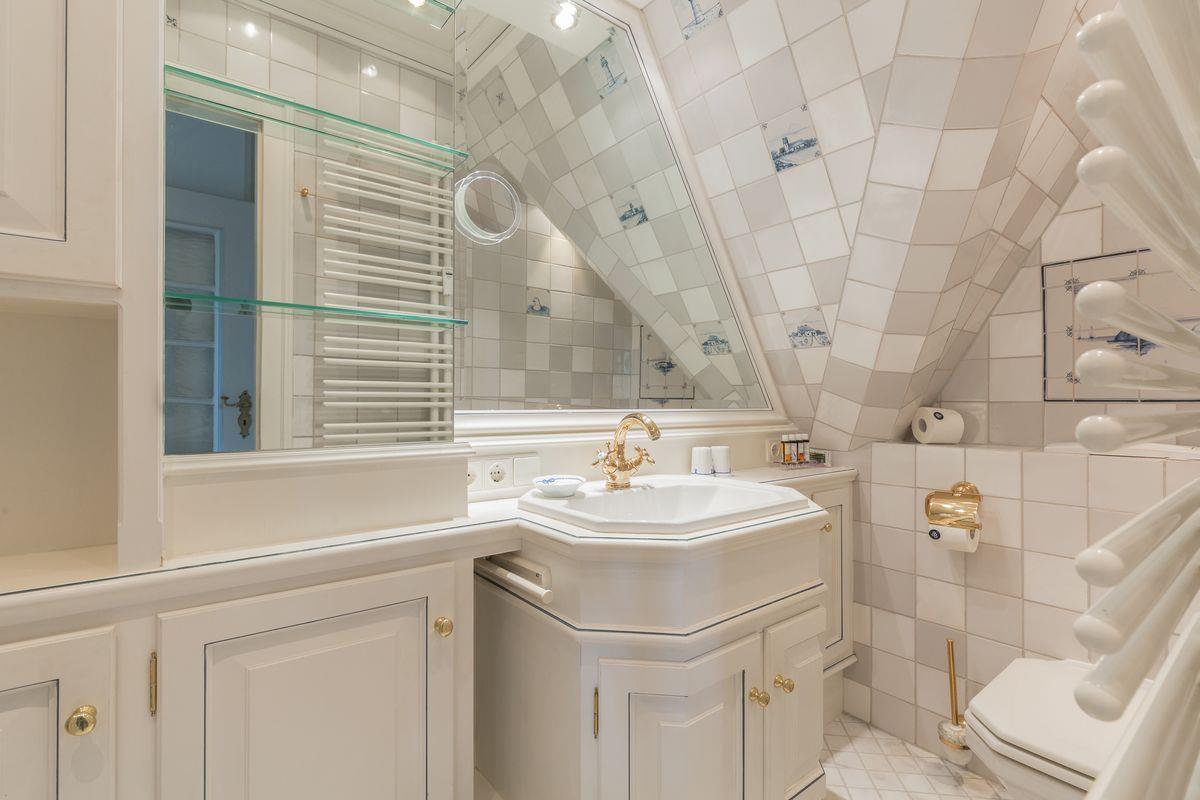 Innen wird Sie das besondere Ambiente Ihrer Suite am Meer sogleich verzaubern. Mehr authentische Syltatmosphäre geht nicht. Historische, kostbare Delfter Fliesen erzählen Geschichten der alten Friesen an Ihren Wänden. Die Güte der Materialien ist erlesen und schafft zusammen mit den wertvollen Dekorationen einen Ort erhabener Wohnkultur. Und Sie haben ja noch nicht DAS Highlight Ihres Domizils gesehen: Im Dachgeschoss erwartet Sie Ihre eigene Bar ! Stilvoller lässt sich Ihr persönlicher Sundowner wahrlich nicht celebrieren.