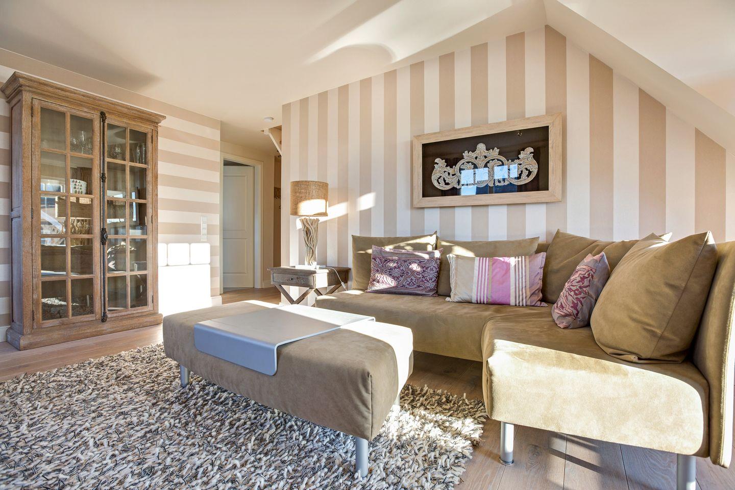 Erleben Sie einen der beliebtesten Urlaubsorte der Insel Sylt – Wenningstedt. Dieses moderne Feriendomizil befindet sich unweit vom Strand und vom Wenningstedter Dorfteich. Die Obergeschosswohnung bietet Ihnen ein lichtdurchflutetes Wohnzimmer mit einer gemütlichen Sofaecke und einem großzügigen Essbereich.