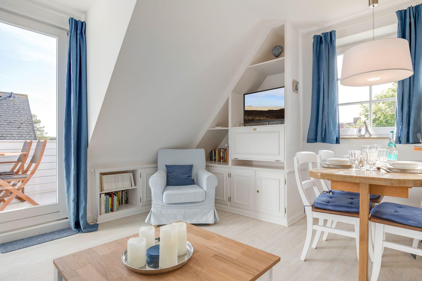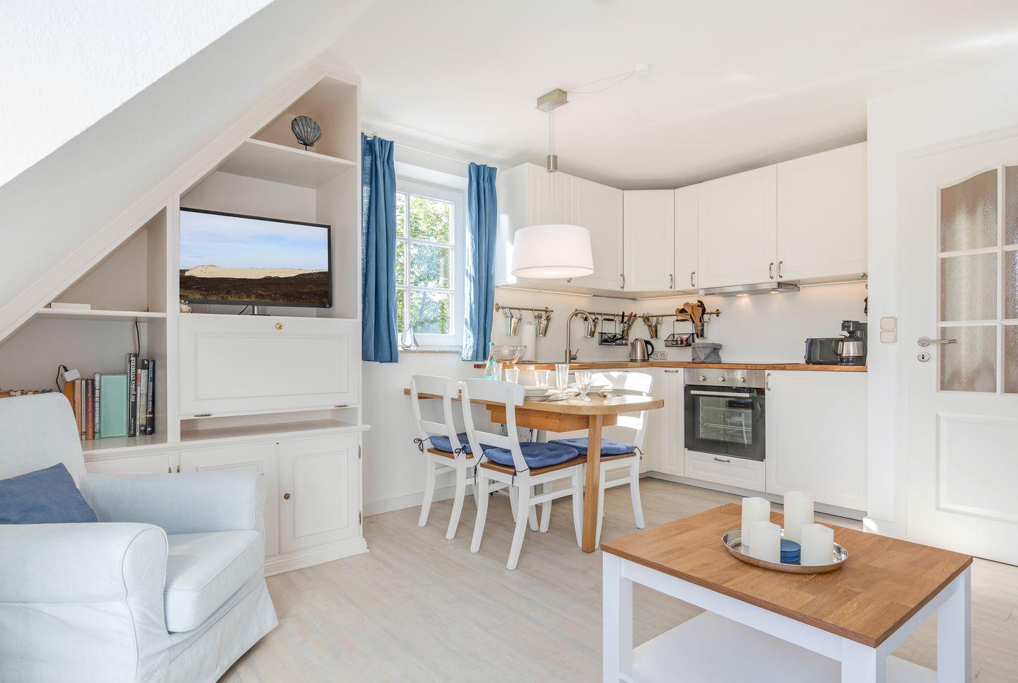 Sie möchten einfach mal raus kommen und den stressigen Alltag hinter sich lassen? Dann ist Sylt genau die richtige Ferienadresse für Sie! In diesem lichtdurchfluteten Feriendomizil in Wenningstedt fällt es leicht, sich im Urlaub pudelwohl zu fühlen. Das Appartement ist in einem modernen Landhausstil eingerichtet und das Wohnzimmer mit offener, voll ausgestatteter Küche lädt zum Verweilen ein. Vom Wohnzimmer aus können Sie auf die großzügige, möblierte Sonnenterrasse treten. Ein leckeres Essen zu zweit oder ein Spieleabend mit der ganzen Familie werden hier zum perfekten Sommer-Urlaubserlebnis.