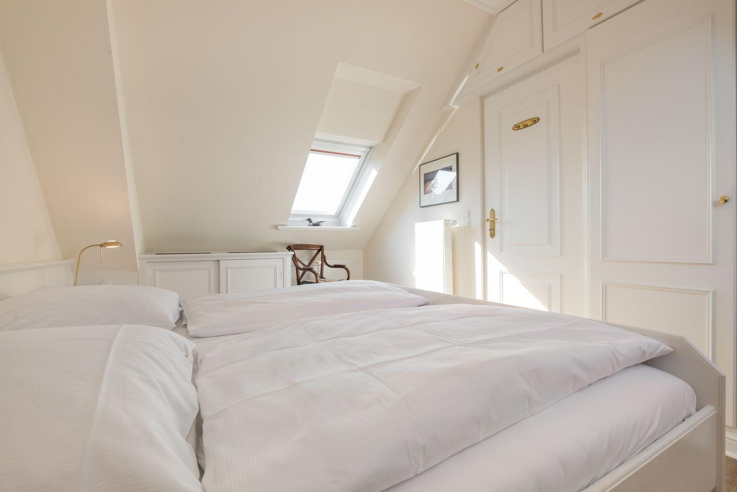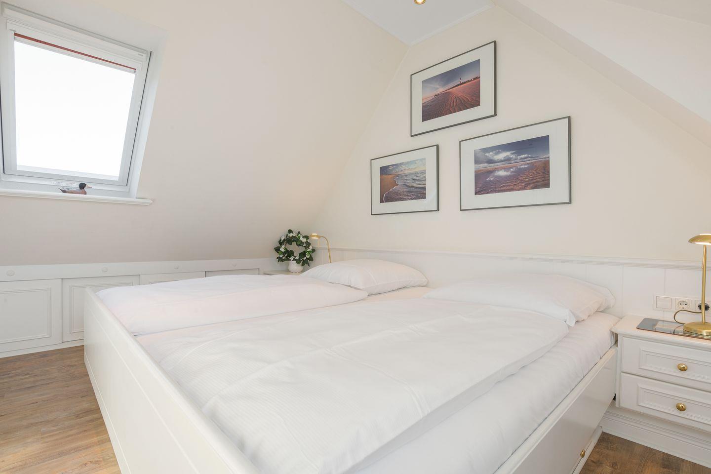 DG: 1 heller und hübsch dekorierter Raum mit Doppelbett (ca. 2mx2m) und viel Schrankplatz.