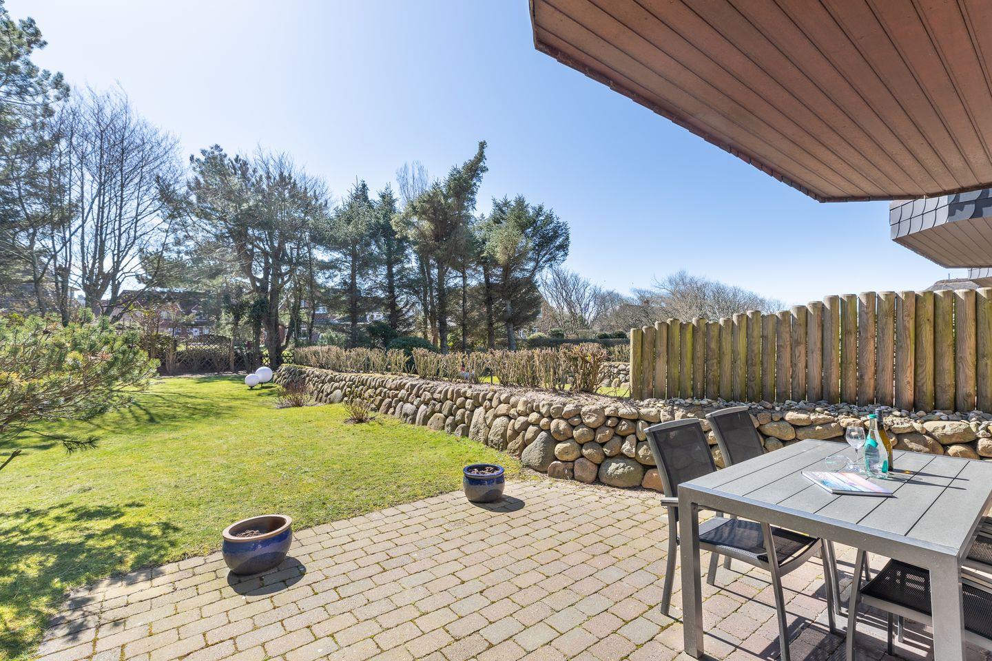 Sehr schöne und großzügige Süd-Terrasse mit Gartenmöbeln und Strandkorb (ca. von April - Oktober). Eigener, separierter Garten. Parkplatz.