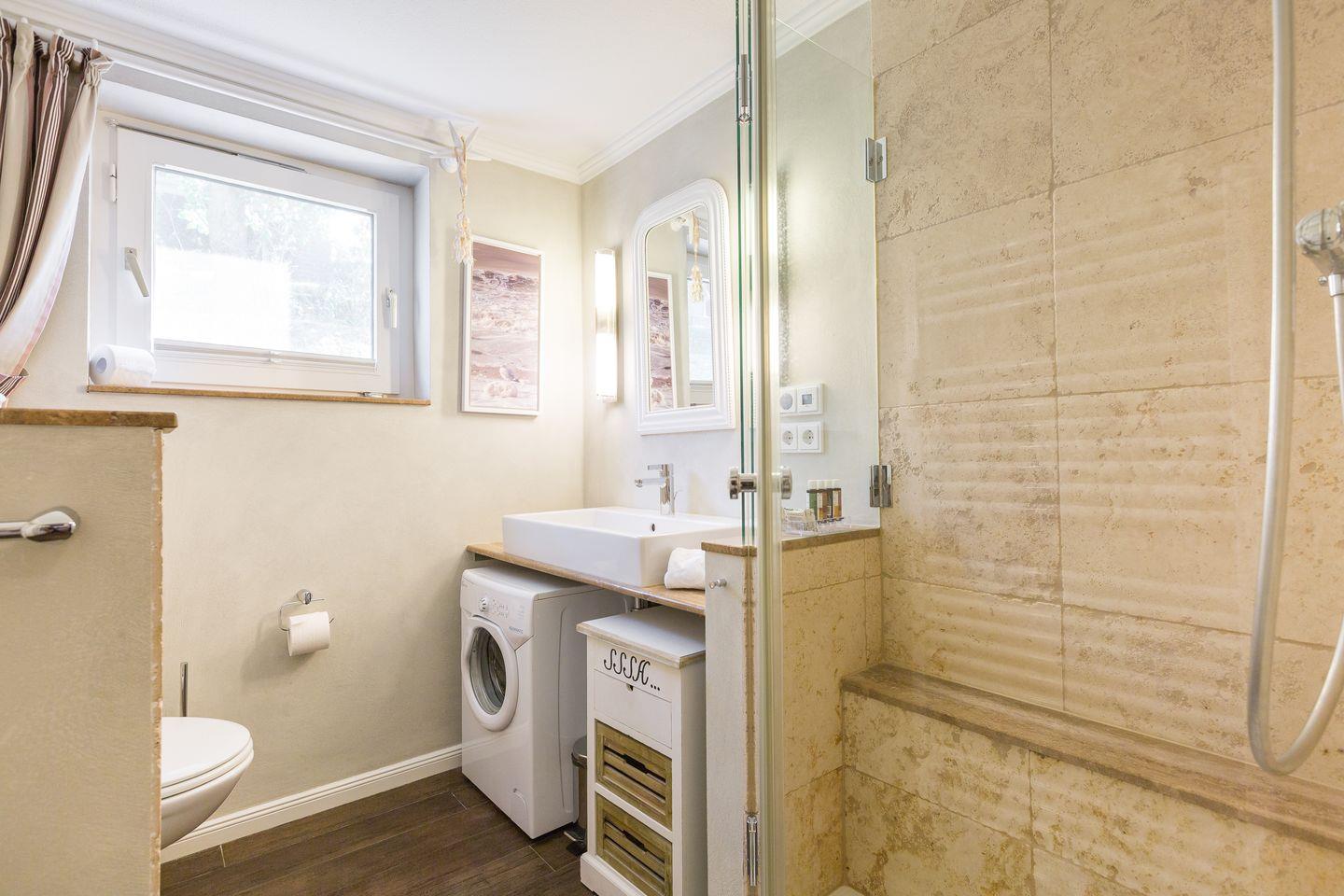 EG: 1 Schlafraum mit Doppelbett (140x200) Souterrain: 1 Schlafraum mit Doppelbett (180x200) mit Flatscreen-TV, Bad mit Dusche /WC,