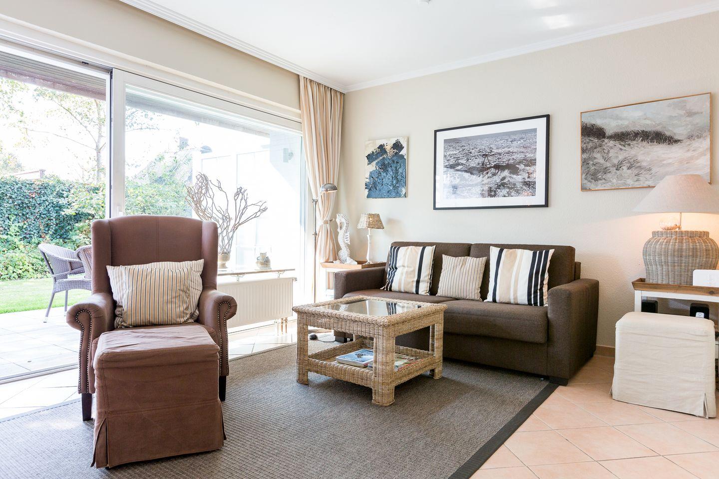 Erdgeschoss: Strandnahes, großzügiges 3-Raum Appartement. Das Appartement verfügt im Erd- und Untergeschoss über ca. 70 qm Wohn/Nutzfläche für bis zu vier Personen.