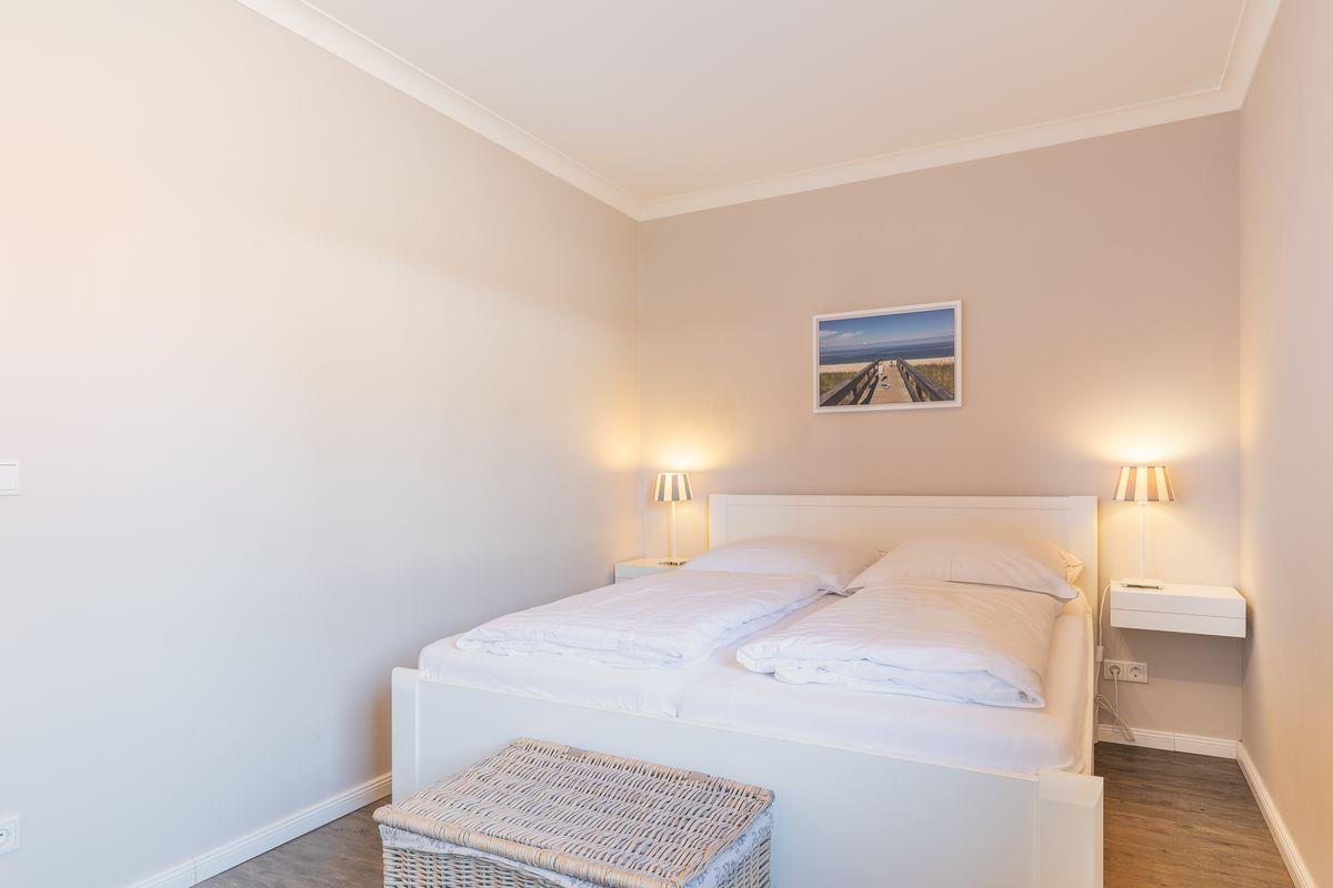 Die moderne Küchenzeile ist offen gestaltet und mit allem ausgestattet, was Ihr Urlaubsherz begehrt. Bereiten Sie sich Ihr Frühstück zu und genießen Sie es im Sommer auf Ihrer möblierten Terrasse mit Blick in den Garten des Domizils. Auf gleicher Ebene befindet sich ein Schlafzimmer mit Doppelbett und großzügigem Schrankplatz. Nebenan finden Sie Ihr modernes Tageslichtbadezimmer mit Dusche und WC.