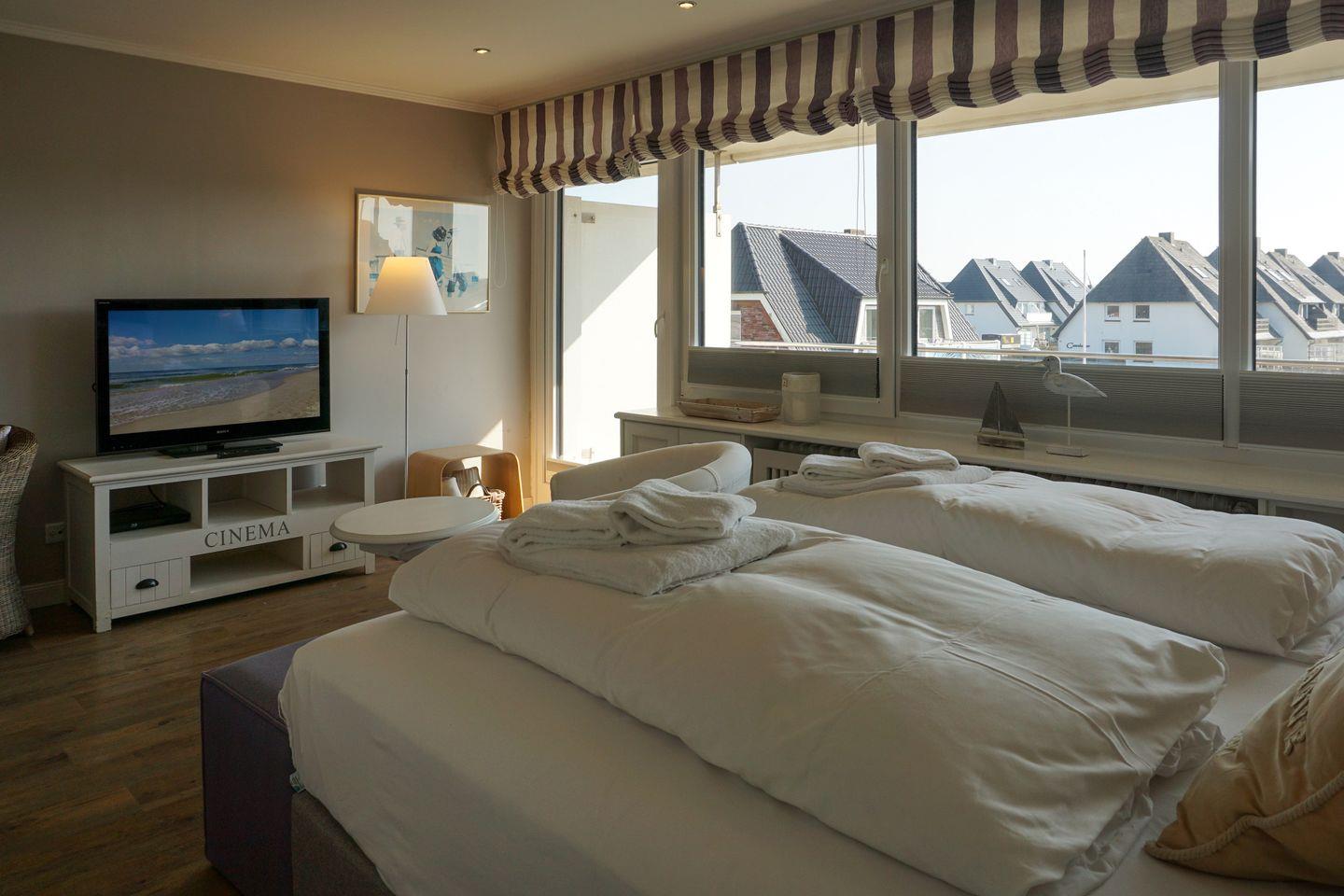 Innen erwartet Sie zwar ein kleines Domizil, dass aber um so feiner und geschmackvoller ausgestattet und möbliert ist. Und wenn Sie dann noch bei herrlicher Morgensonne Ihr Frühstück auf dem Ost-Balkon genießen, sollte Ihr Urlaubsglück gar königlich ausfallen.