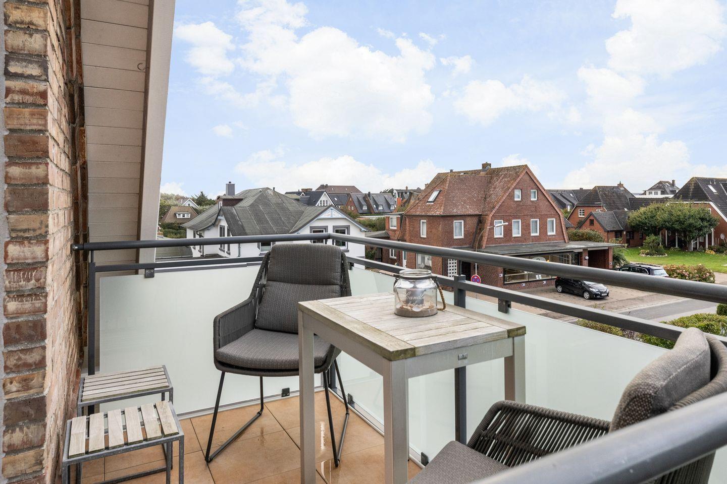 Den Sylter Sonnenschein genießen Sie prächtig auf Ihrem kleinen, aber feinen Süd-/Westbalkon. Wertiges Gartenmobiliar kann flexibel gestellt werden (ca. von April-Oktober).