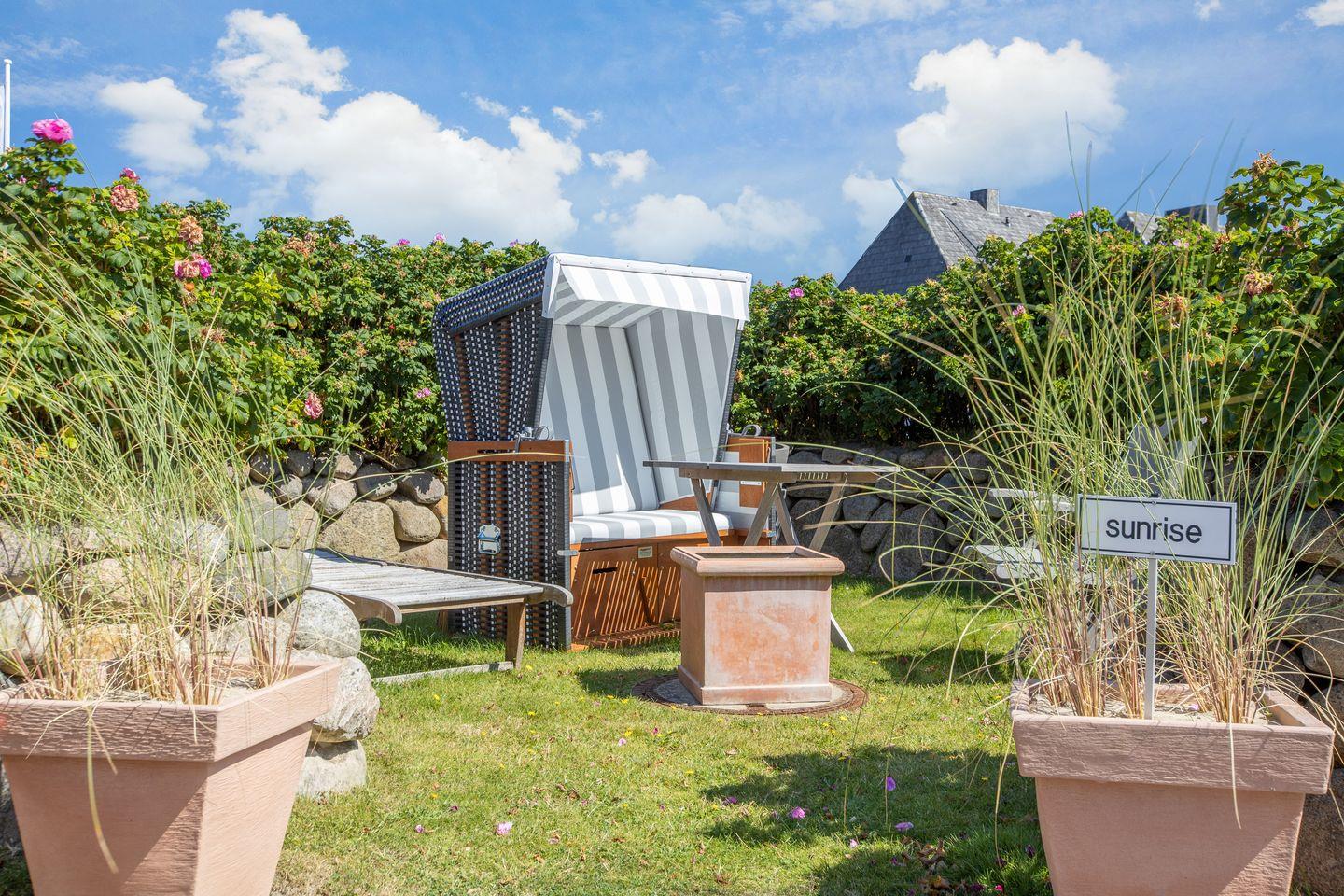 Genießen Sie bei schönem Wetter Ihren möblierten Gartenteil und atmen Sie dabei die frische Nordseeluft ein. Wenn der Wind richtig steht, werden Sie auch von hier sicher schon das Meer rauschen hören.