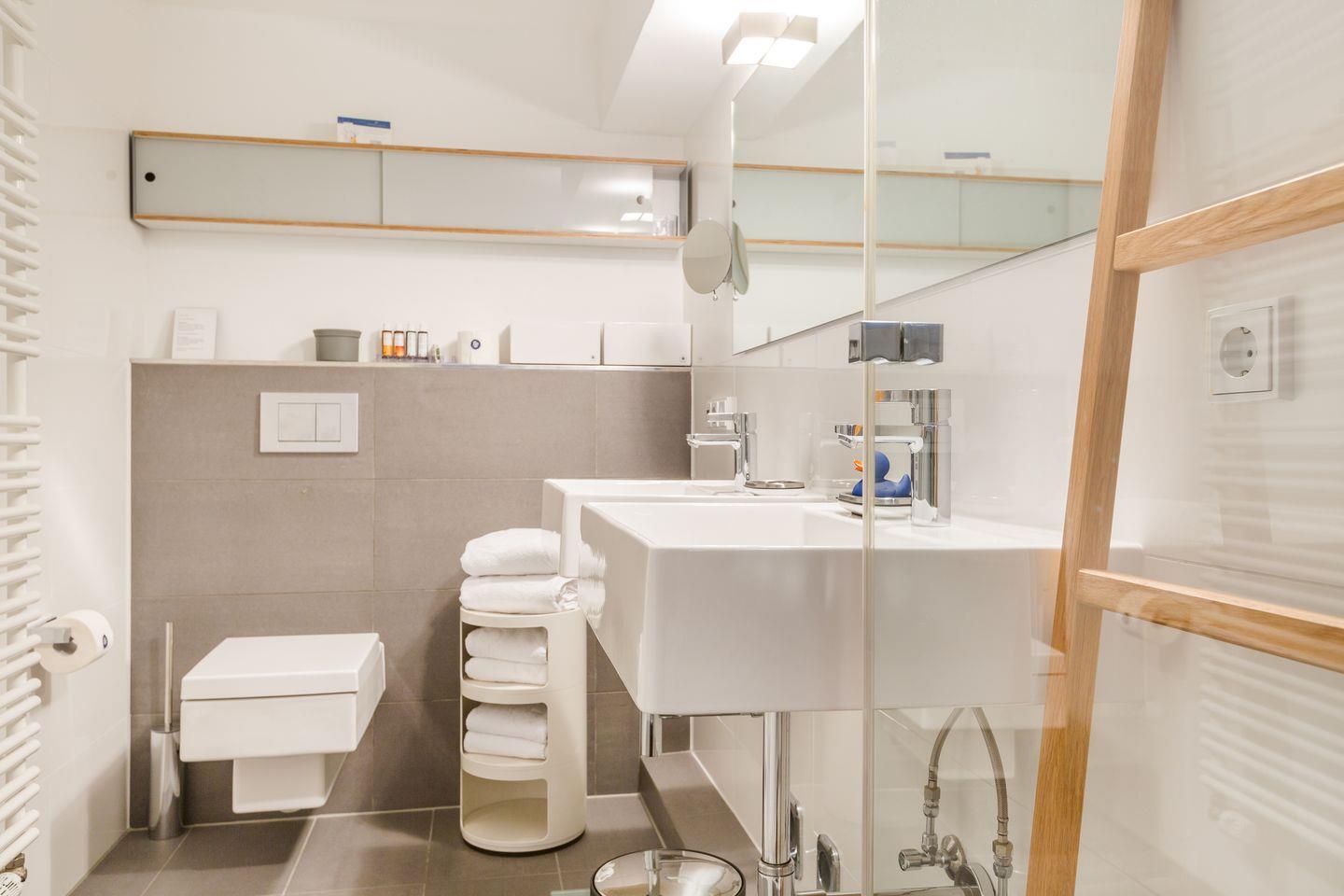 Das Wohnzimmer bietet Ihnen eine gemütliche Couchecke, einen Flatscreen-TV (kostenlose Sky- und Netflix-Nutzung) und einen kleinen, schicken Essbereich. Die offene Küche ist voll ausgestattet, sodass Ihren Urlaubs-Kochkünsten nichts mehr im Wege stehen sollte. Im Erdgeschoss steht Ihnen außerdem ein Gäste-WC zur Verfügung.