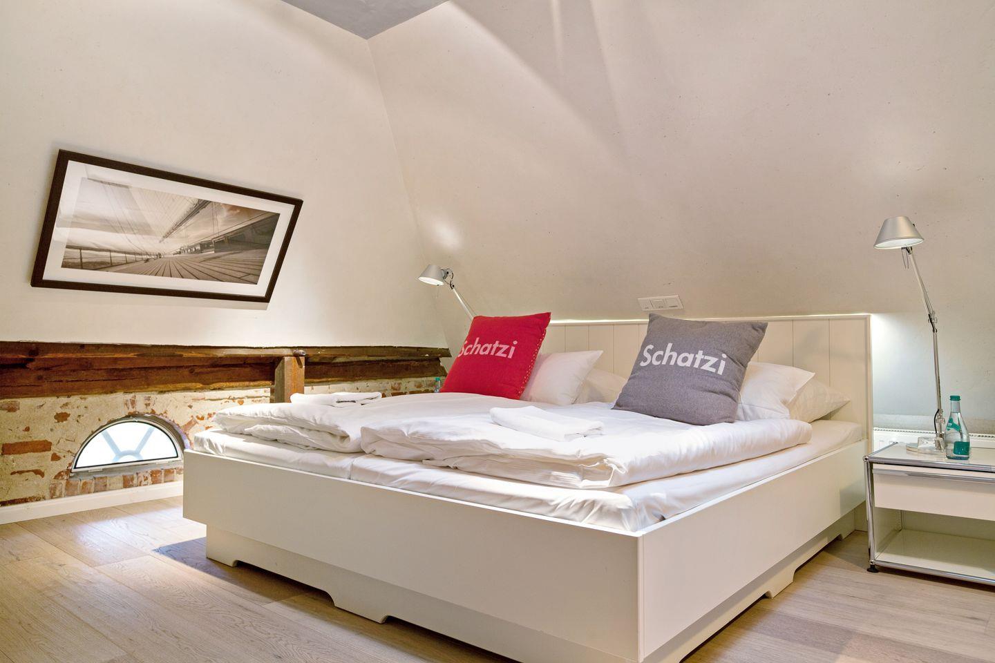 EG: offener Wohnraum mit gemütlicher Couch, Flatscreen-3D-TV und USM und VITRA/Eames Mobiliar, W-LAN, Blu-Ray Player, portables BOSE Sounddock, Essbereich für drei Personen, räumlich abgetrennte Küche mit Backofen, Induktionsherd, Wasserkocher, Filterkaffeemaschine, Geschirrspülmaschine, Toaster und Espressomaschine, Schlafzimmer mit Einzelbett (90x200cm) und Tischler-Einbaumobiliar, Tageslicht-Badezimmer mit Dusche und WC