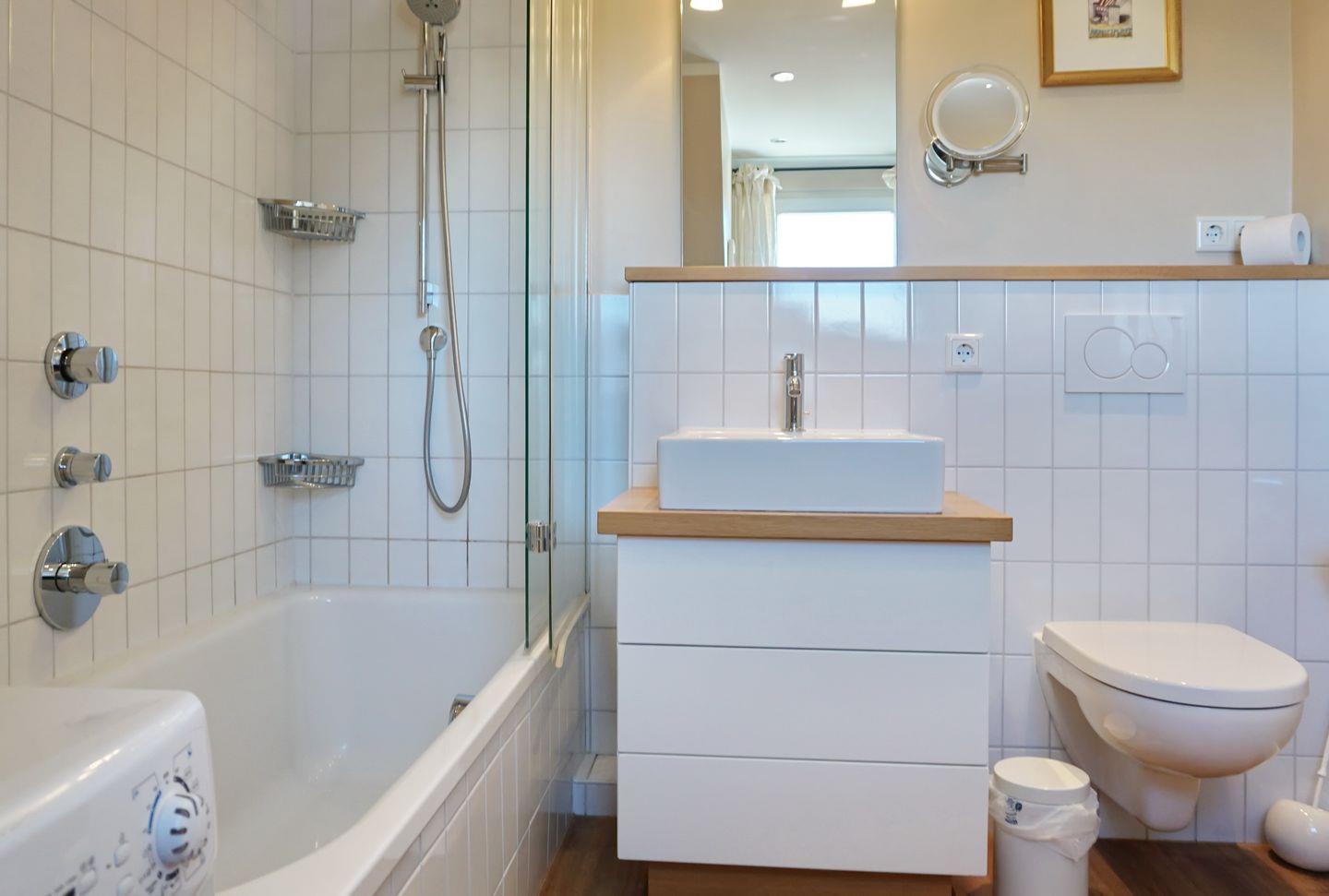 OG: Wohnraum mit TV, W-Lan, Essbereich, offene Küche mit Backofen-Microwellen-Kombi, Geschirrspüler, Kochfeld, Balkon mit Gartenmöbeln (April-Oktober). Badezimmer mit Dusche und WC. Waschmaschine zur Eigennutzung vorhanden.