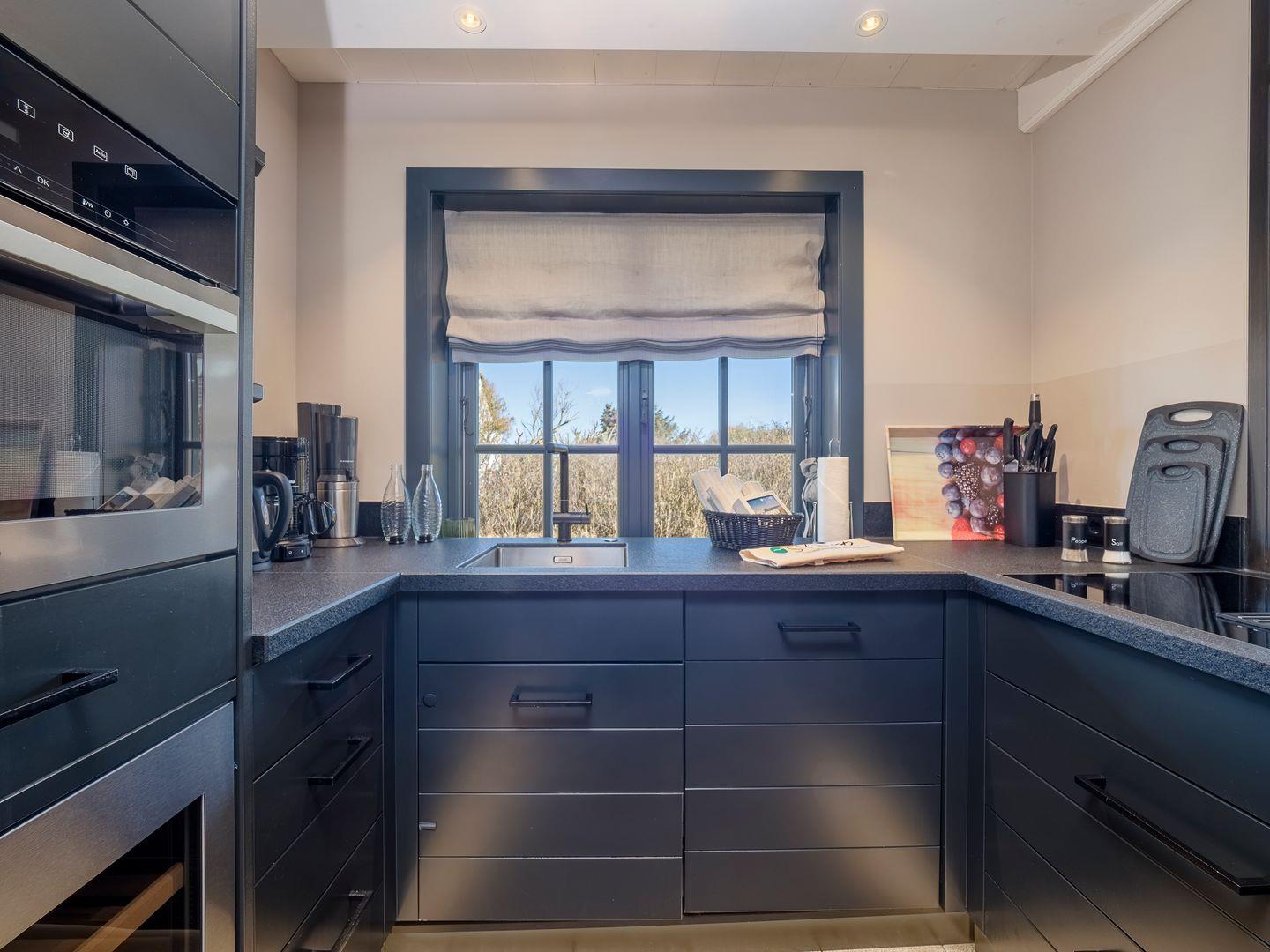 Im Erdgeschoss ist vom Flur aus die geschlossene Küche mit kleinem Essbereich und das separate Wohn- und Esszimmer begehbar. Die moderne und hochwertig ausgestattete Küche lässt mit Induktionsherd und integrierter Dunstabzugshaube, Mikrowelle mit Backofen-Funktion, Weinkühlschrank, Nespresso-Kapselmaschine und SodaStream Wassersprudler keine Wünsche offen. Ein gemütlicher Wohnraum mit freiem Blick in den Garten verfügt über einen Sofa- und Essbereich, die mit Kamin und TV zum Verweilen einladen.