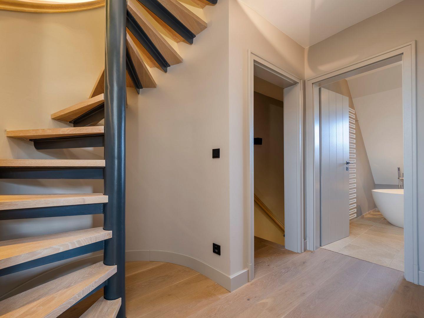 Zwei Badezimmer mit bodengleicher Regendusche, Handtuchtrockner und Fenster. Eines der Badezimmer verfügt zusätzlich über eine freistehende Badewanne, Radio und Meerblick.