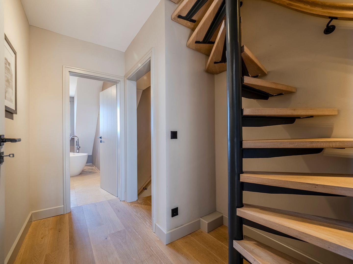 Zwei Badezimmer mit bodengleicher Regendusche, Handtuchtrockner und Fenster. Eines der Badezimmer verfügt zusätzlich über eine freistehende Badewanne, Radio und Meerblick.