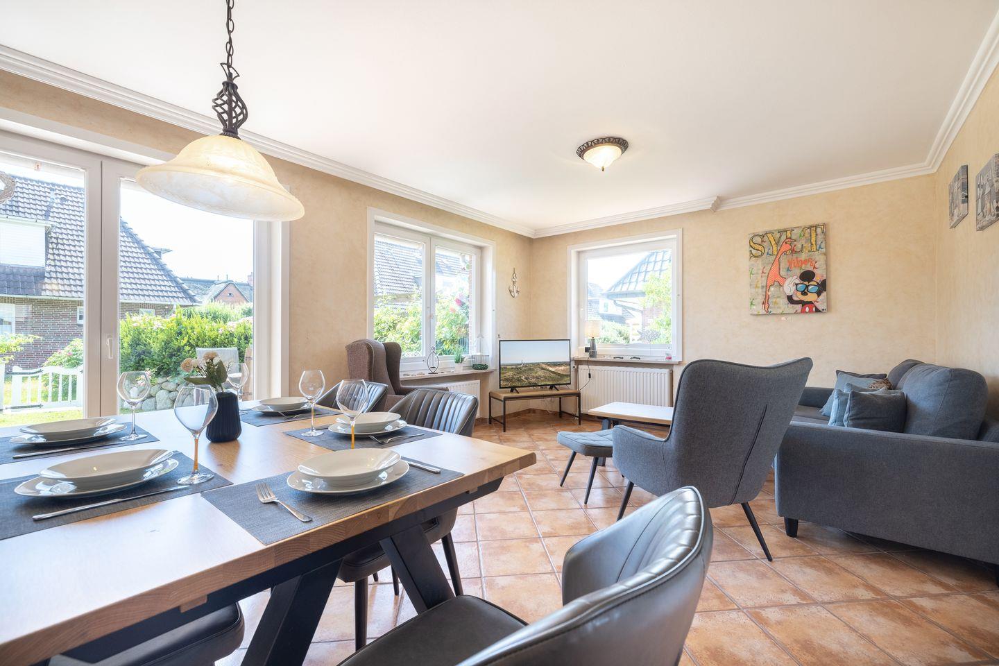 Willkommen im Haus Lotta, Ihrem perfekten Ferienhaus auf Sylt! Diese großzügige Unterkunft bietet Platz für bis zu fünf Personen und ist ideal für Familien und Haustierbesitzer. Genießen Sie die moderne, voll ausgestattete Küche, das gemütliche Wohnzimmer und die sonnige Terrasse mit Zugang zum Garten. Erleben Sie unvergessliche Tage in diesem charmanten Rückzugsort! Buche jetzt deinen Traumurlaub!