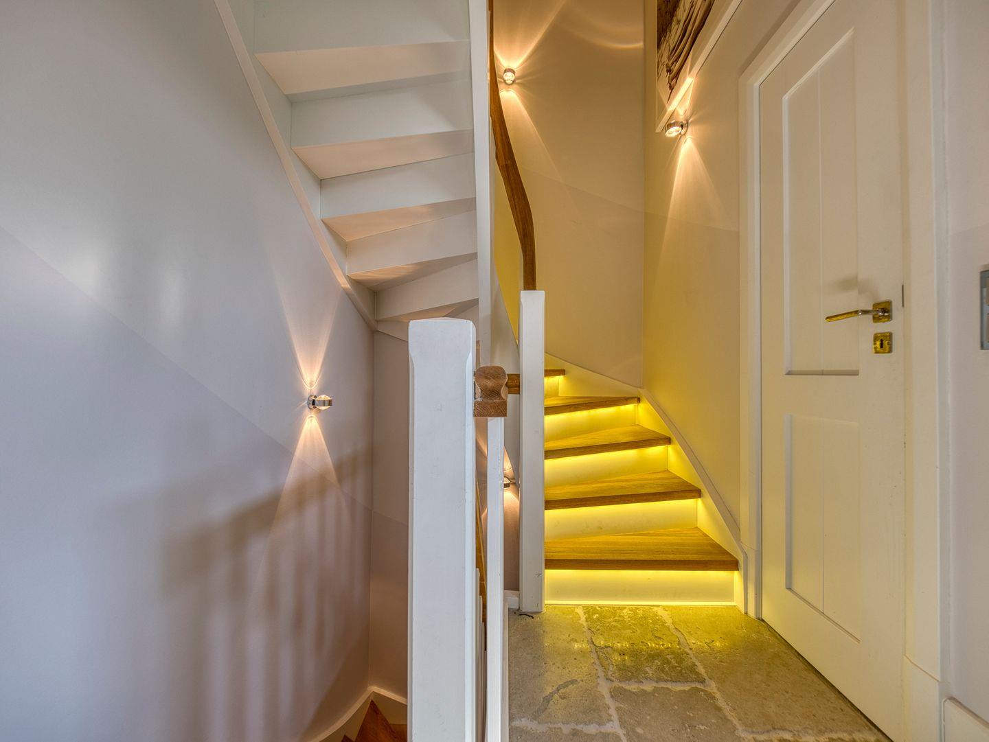 Über einen geräumigen Hausflur mit Garderobe und Ablagefläche gelangen Sie in den hellen und modernen Küchen- und Wohnbereich. Die hellgraue und hochwertige, top ausgestattete, offene Landhausküche lässt für Hobbyköche keine Wünsche offen. 5-Platten-Herd, Backofen, Side-by-Side Kühl- und Gefrierschrank, Weinkühlschrank und Bartresen sind nur ein paar Besonderheiten der Ausstattung. Ein langer Esstisch aus Massivholz ist das Herzstück des Wohnraumes und ermöglicht gesellige Abende mit Familie und Freunden. Die bequeme Sofaecke mit großem TV, Kamin und Blick in den Garten lädt zum Verweilen ein.