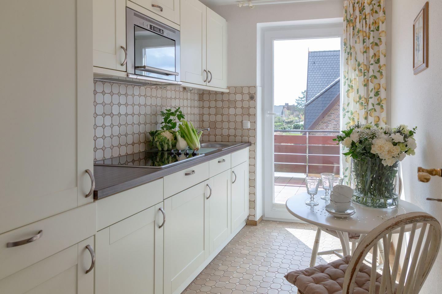Genießen Sie erholsame Momente auf dem großzügigen Balkon, von dem aus Sie die frische Nordseeluft einatmen und einen wunderbaren Blick über die Dächer von Wenningstedt erleben können.