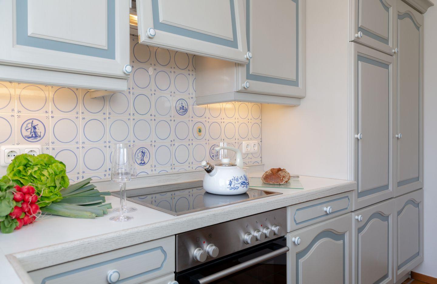 Der liebevoll eingerichtete Wohnbereich lädt mit einem komfortablen Schrankbett zu entspannten Stunden ein. Zusätzlich sorgt ein Gäste-WC für angenehmen Komfort und Privatsphäre. Die separate, moderne Küche ist vollständig ausgestattet und macht die Selbstversorgung im Urlaub zum Vergnügen.