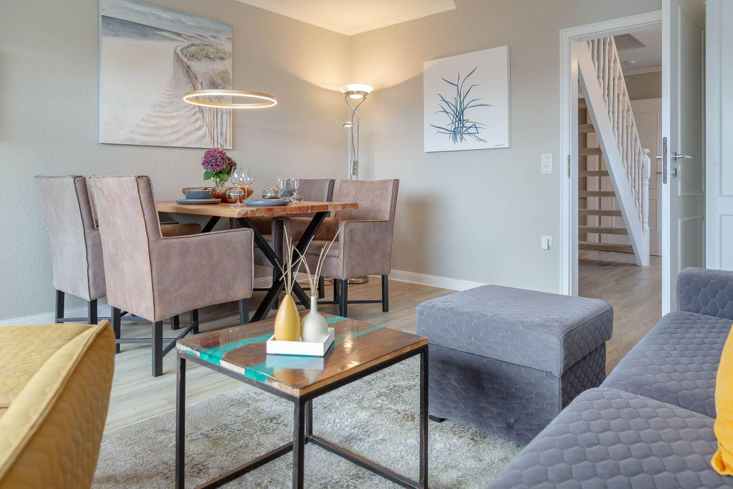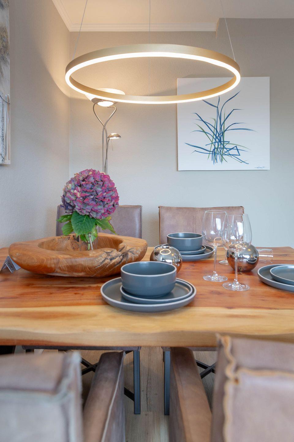 Es erwartet Sie ein exquisites, sehr modernes Design in heller Atmosphäre, in grauen und cremefarbenen Tönen gehalten, mit ganz viel Liebe zum Detail gestaltet. Dieses Urlaubsdomizil ist lichtdurchflutet, und der Blick durch die Fenster präsentiert schöne Ausblicke. In diesem vorzüglichen Ambiente zu wohnen, bedeutet Urlaub von Anfang an!