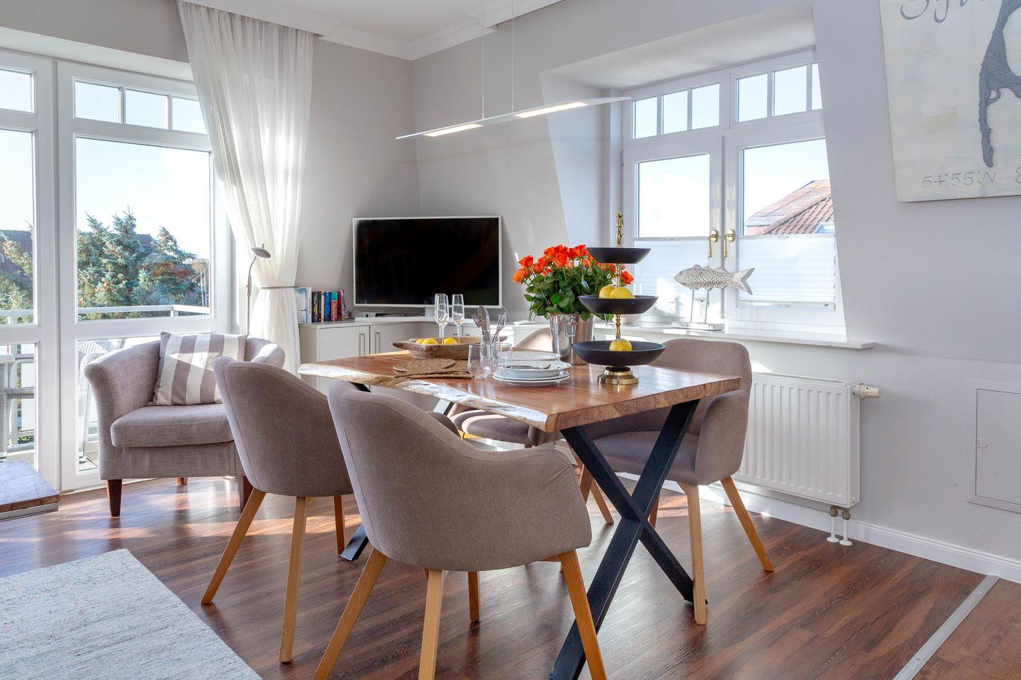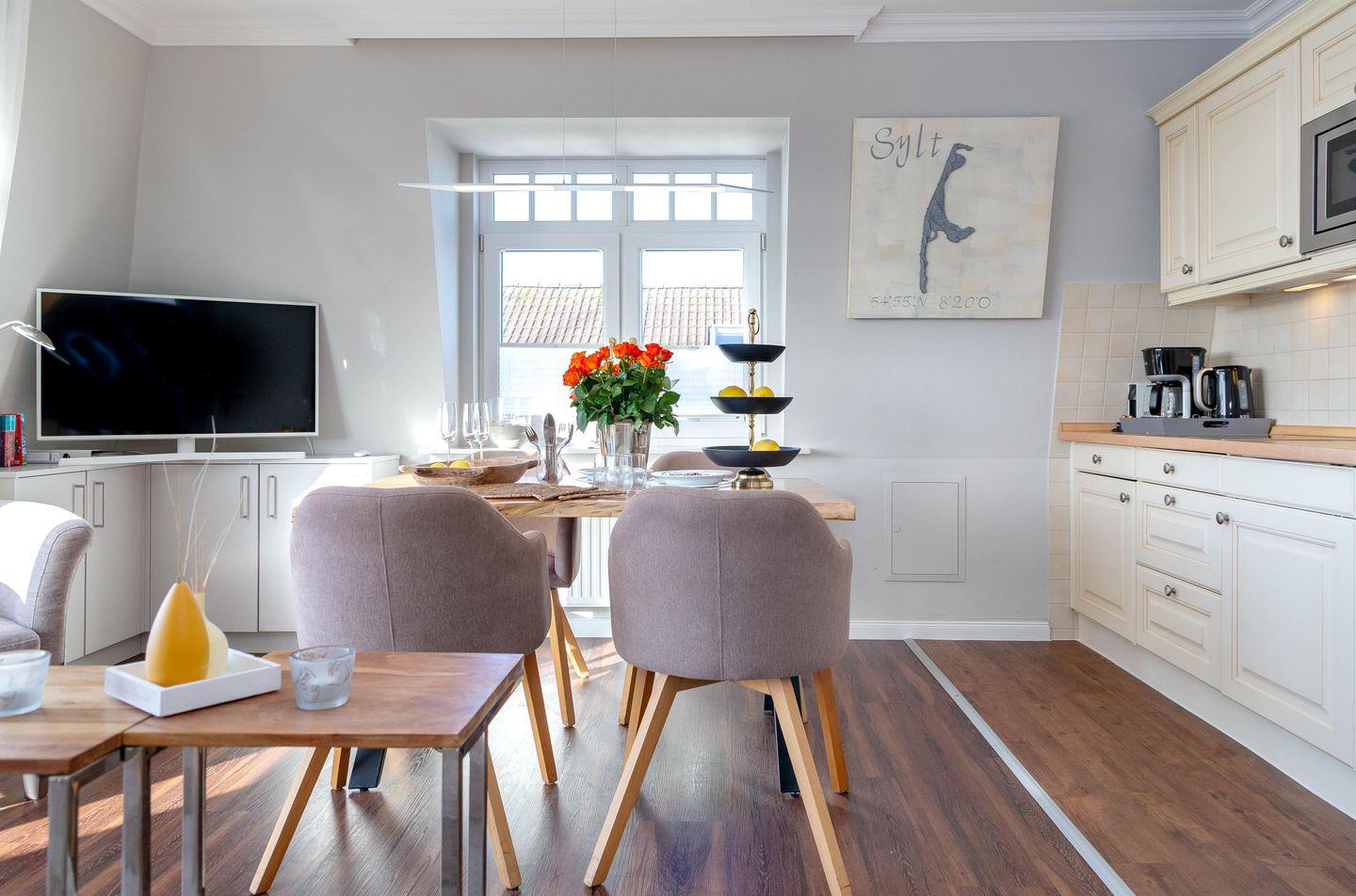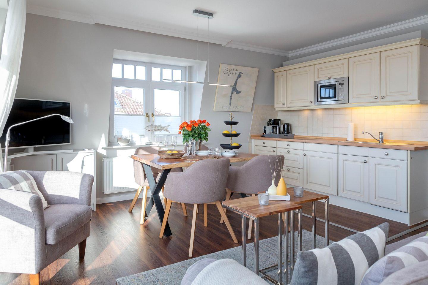Wir heißen Sie herzlichst willkommen in unserer 3-Zimmer-Ferienwohnung A5 in der neu eröffneten "Residenz Strandläufer" in Wenningstedt. Die großzügig gestaltete Wohnung mit ca. 70 qm erstreckt sich über 2 Ebenen (2. Obergeschoß und Dachgeschoß). Sie ist komplett modernisiert und erstrahlt in neuem Glanz!