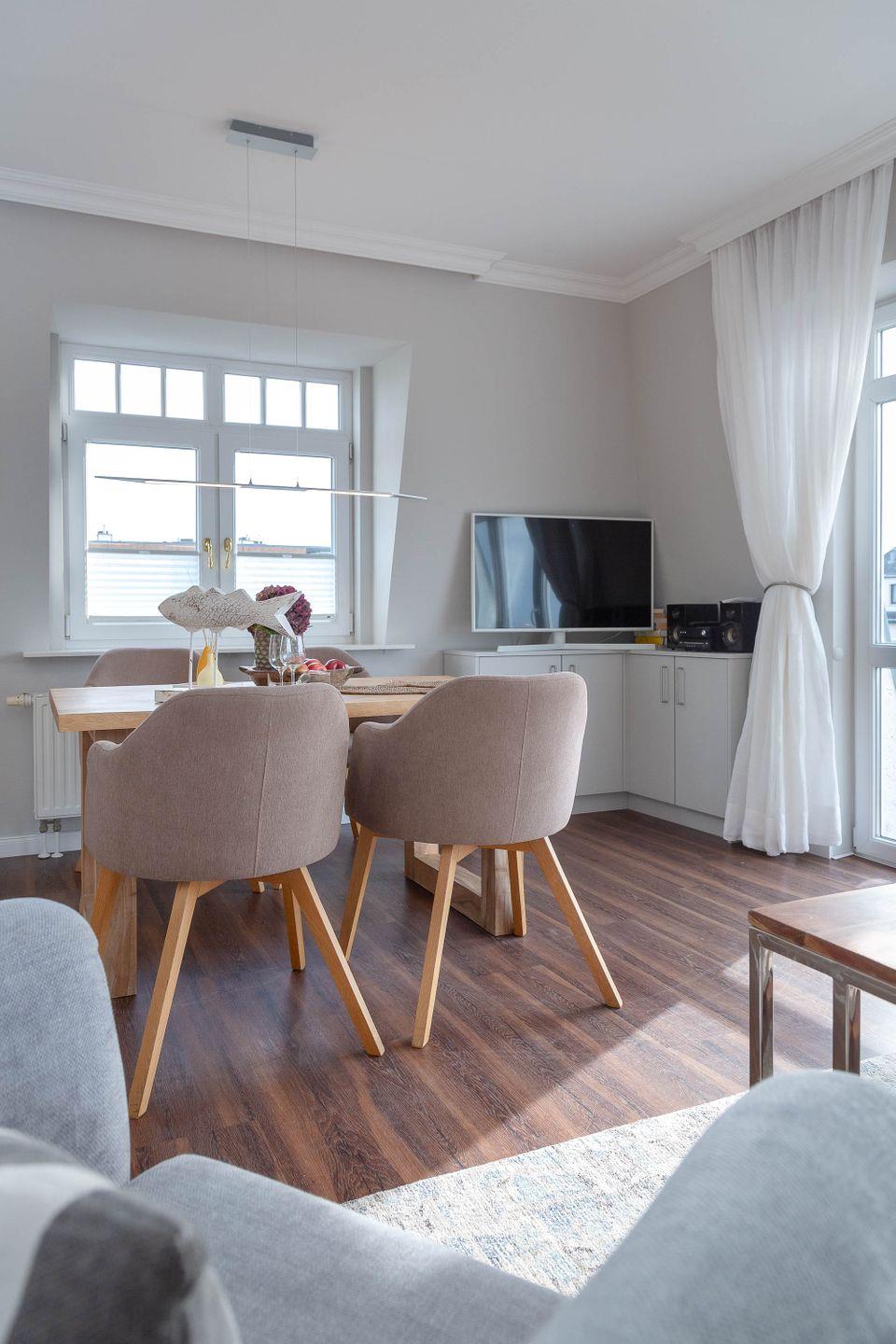 Es erwartet Sie ein exquisites, sehr modernes Design in heller Atmosphäre, in grauen und cremefarbenen Tönen gehalten, mit ganz viel Liebe zum Detail gestaltet. Dieses Urlaubsdomizil ist lichtdurchflutet, und der Blick durch die Fenster präsentiert schöne Ausblicke. In diesem vorzüglichen Ambiente zu wohnen, bedeutet Urlaub von Anfang an!