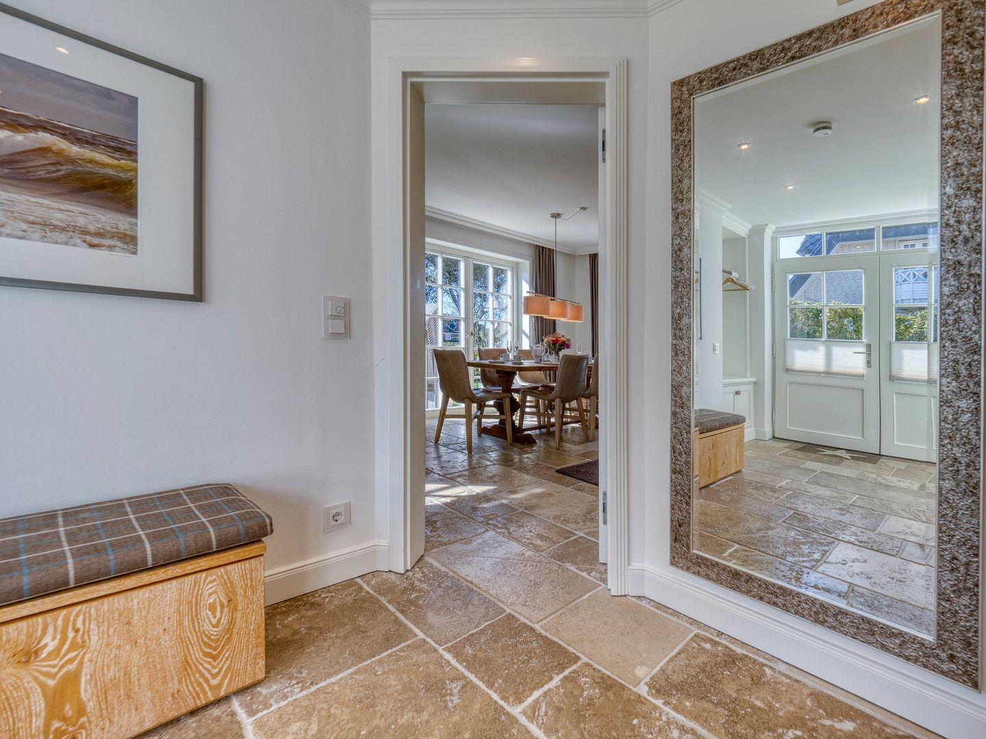 Dieses stilvolle Feriendomizil unter Reet bietet viel Platz auf drei Ebenen. Im Erdgeschoss befinden sich neben einem sehr großzügigen Eingangsbereich: