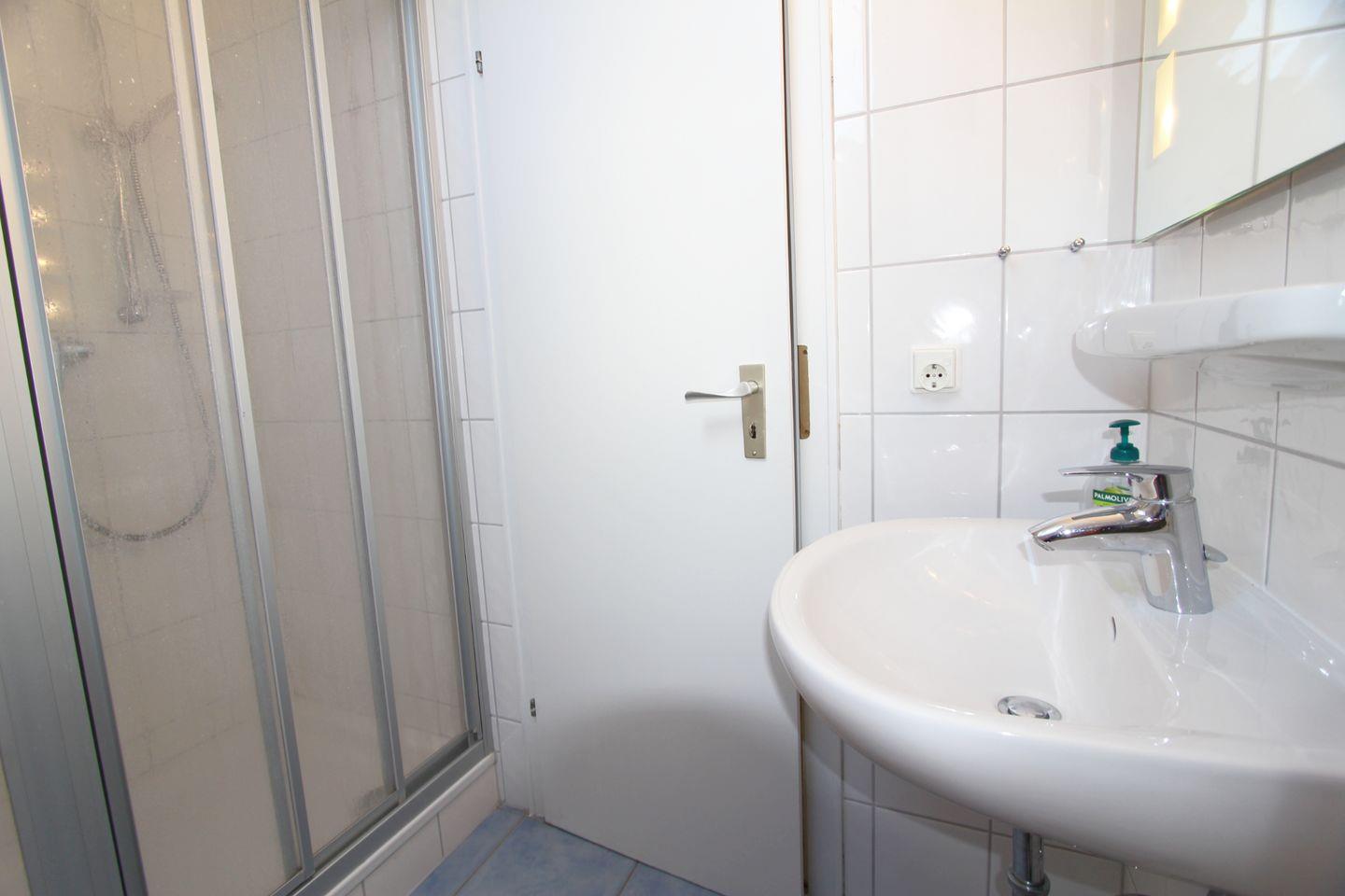 Das hell geflieste Badezimmer ist mit einer Dusche ausgestattet und verfügt über Tageslicht. Ein Fön steht Ihnen ebenfalls zur Verfügung.