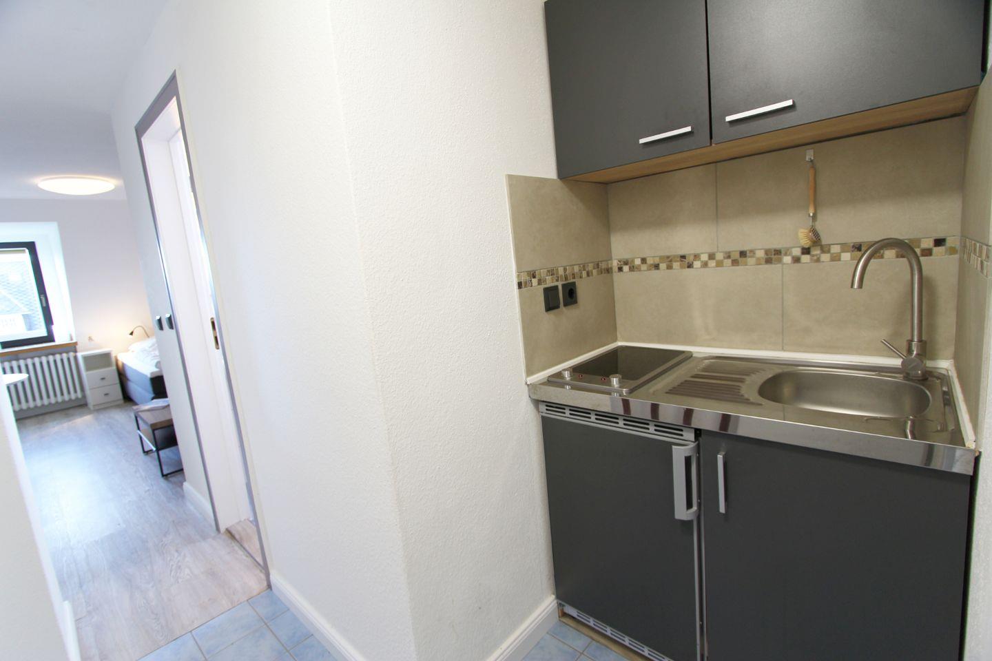 Die Kochnische bietet die Möglichkeit, kleine Speisen zuzubereiten, die Sie am Essplatz im Wohnzimmer genießen können.