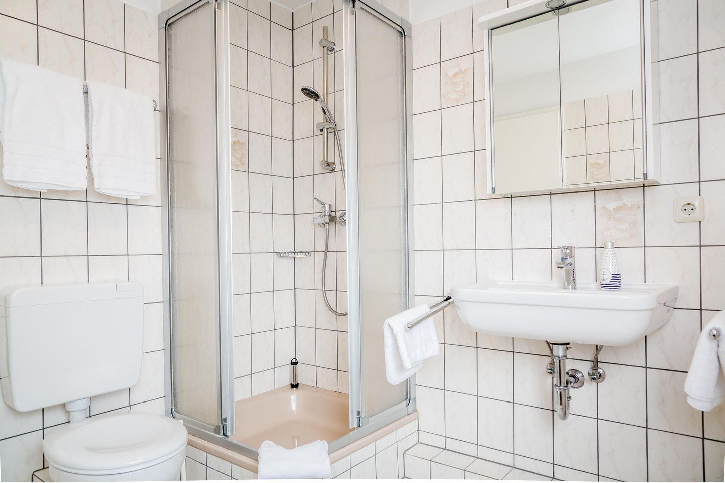 Das separate Schlafzimmer sorgt für erholsame Nächte, das moderne Badezimmer mit Dusche fügt sich ruhig ins Gesamtbild ein. WLAN und TV stehen selbstverständlich zur Verfügung. Ein eigener Stellplatz am Haus sorgt für entspanntes Ankommen.